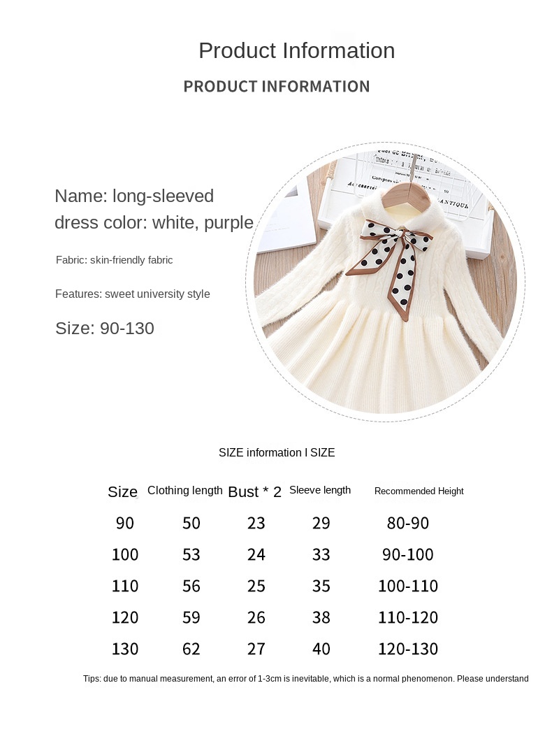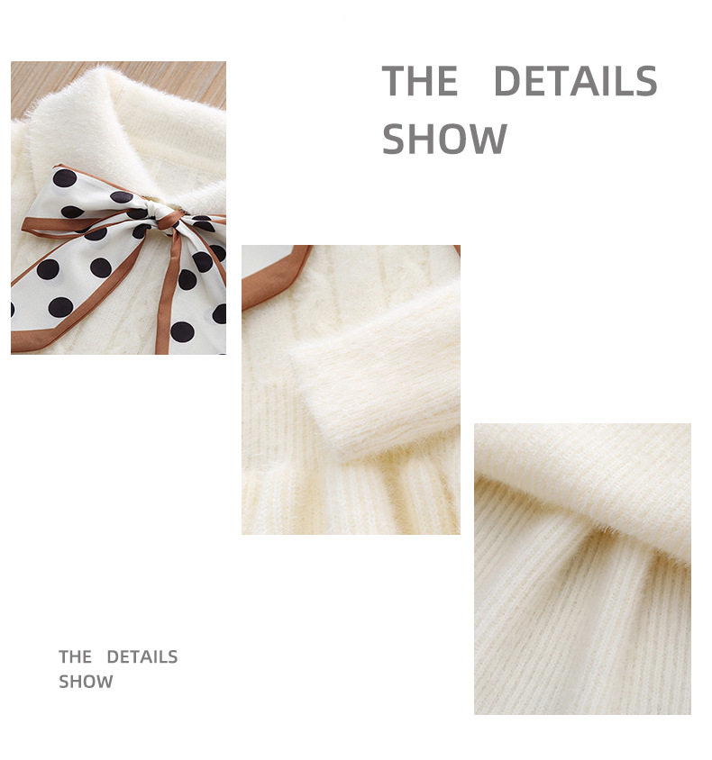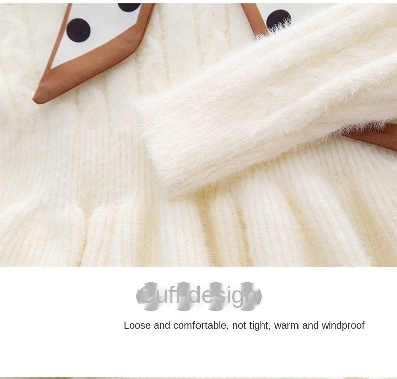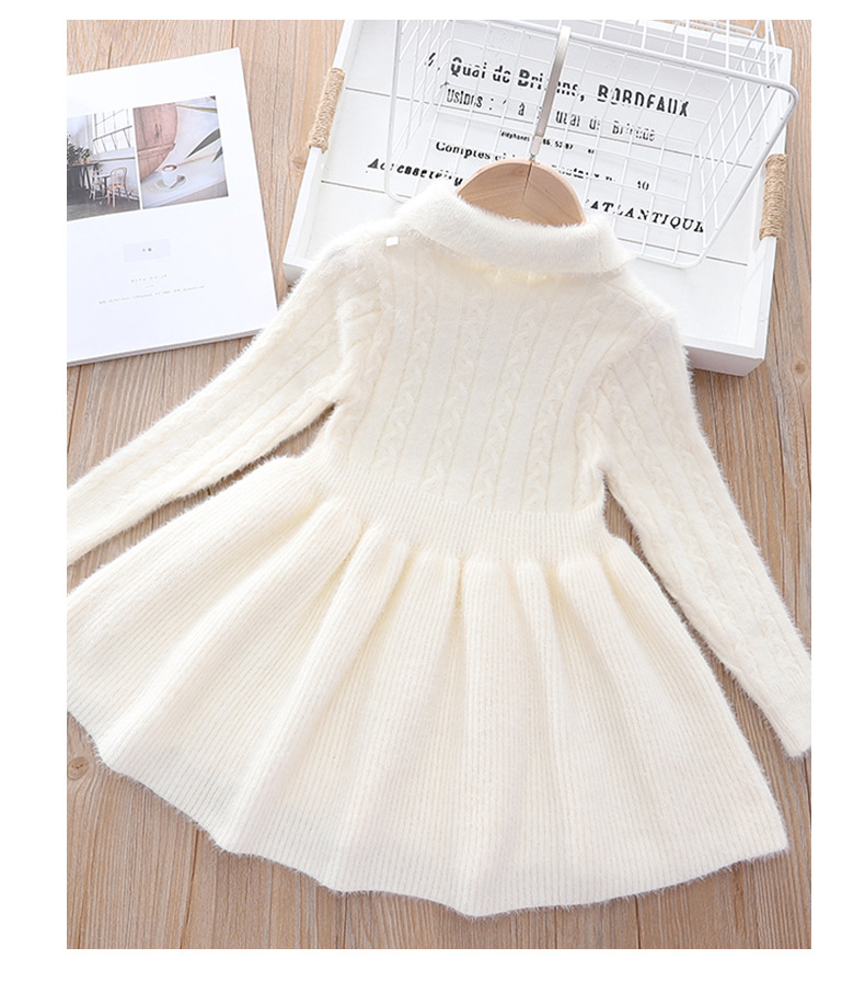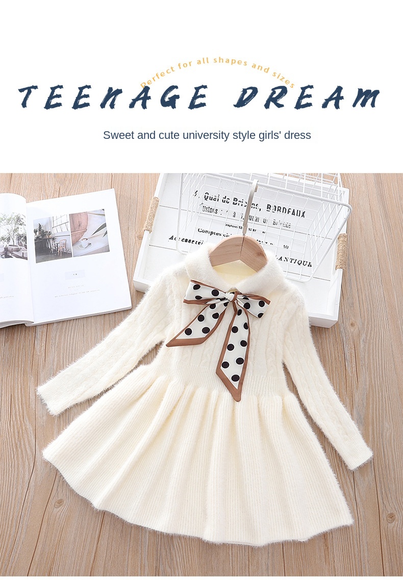 Winter New Cotton Long Sleeve Anti-Wrinkle Knitted White Sweater Girls Dress
