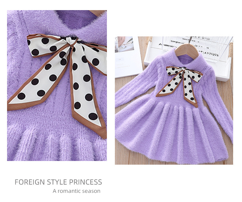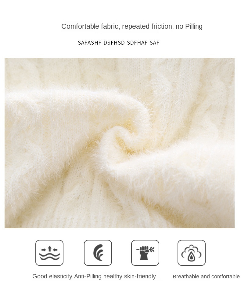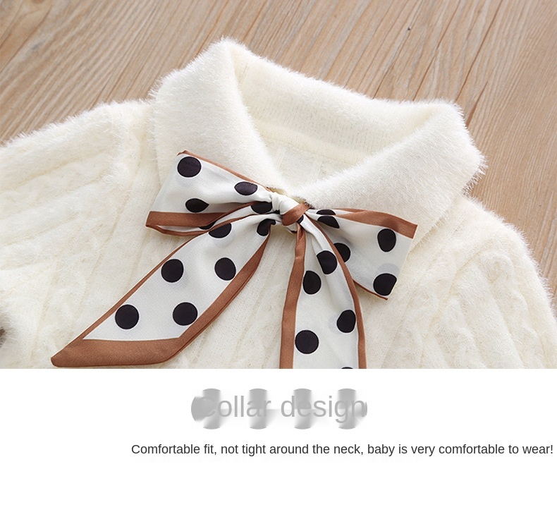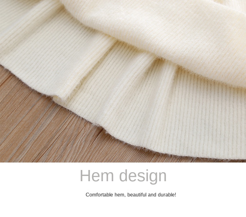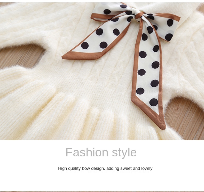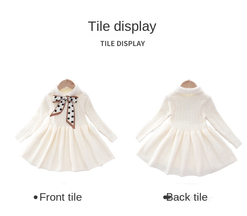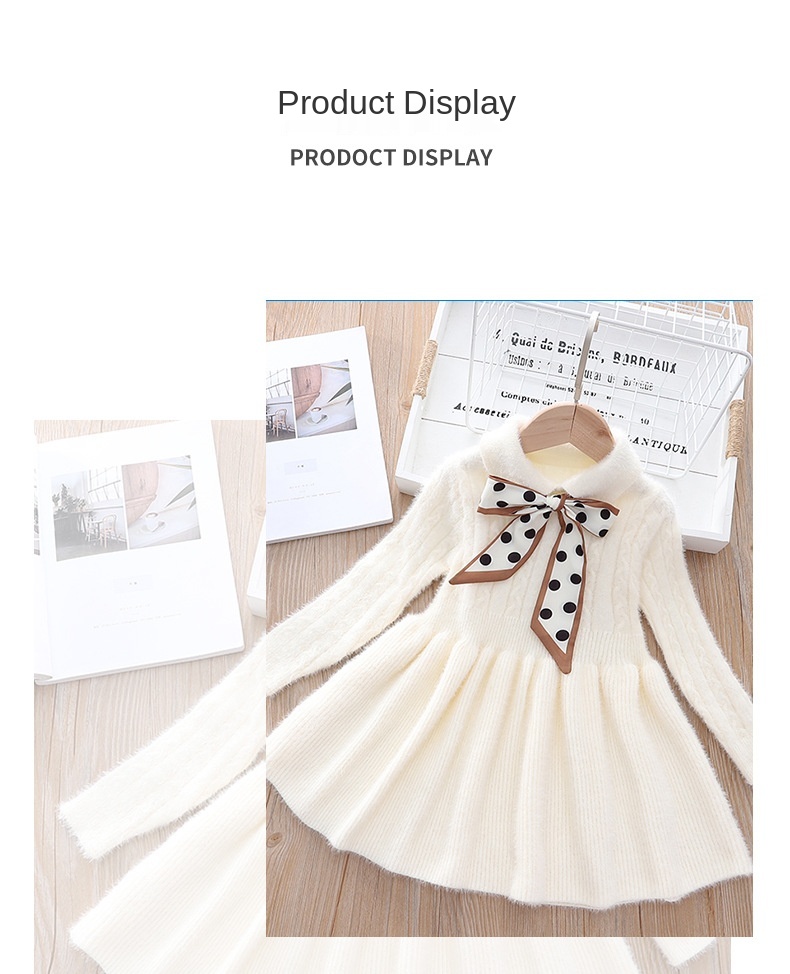 Winter New Cotton Long Sleeve Anti-Wrinkle Knitted White Sweater Girls Dress