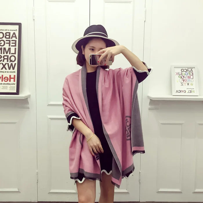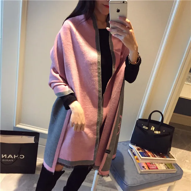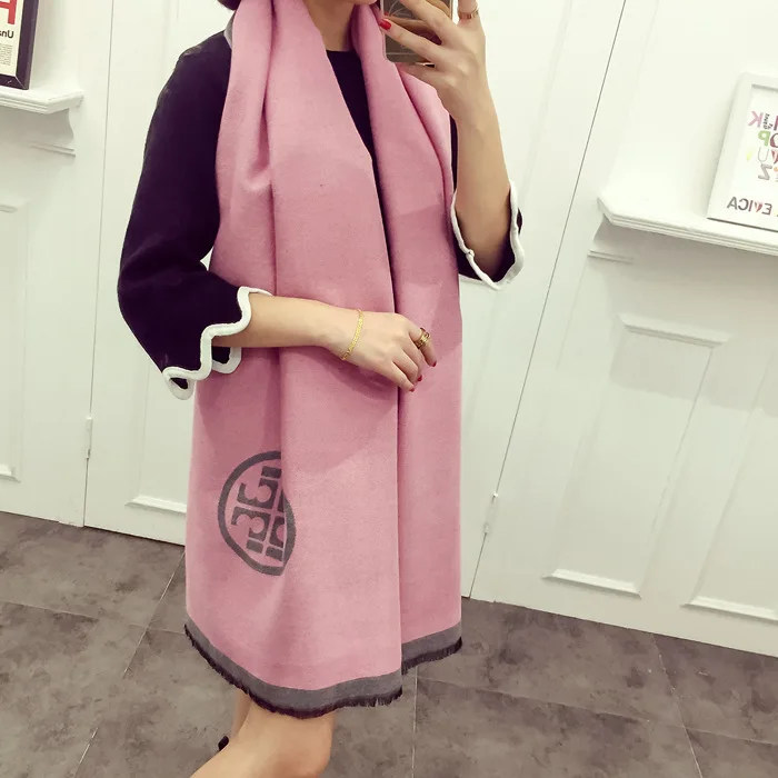 Winter New Europe And America Wild Word Cashmere Scarf Ladies Long Section Dual-Use Warm Thick Winter Shawl