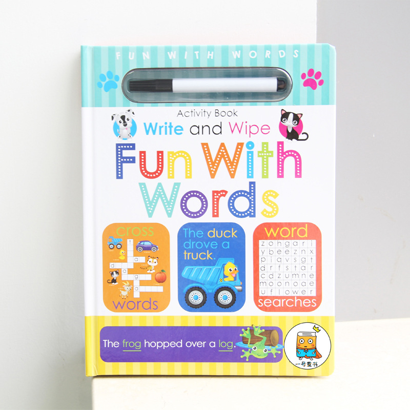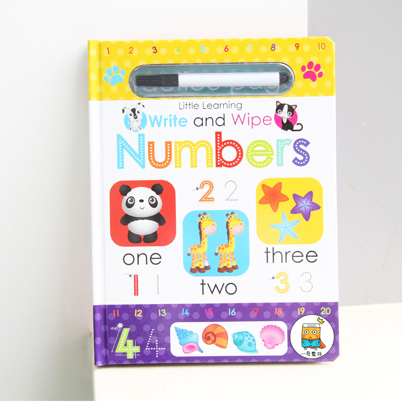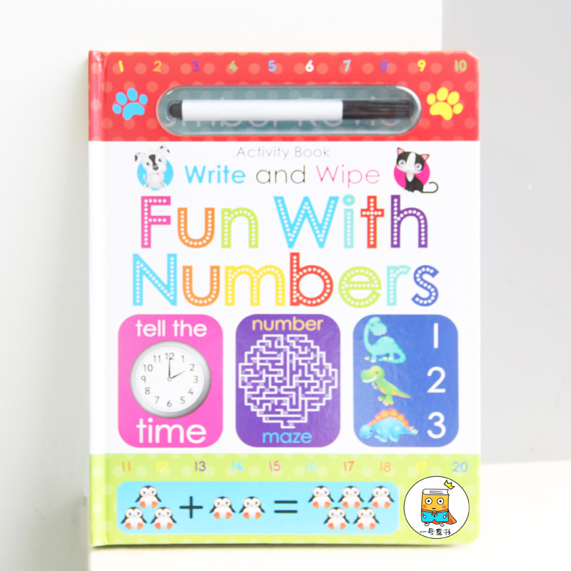 Wipe clean study book activity workbook, funny number word alphabet