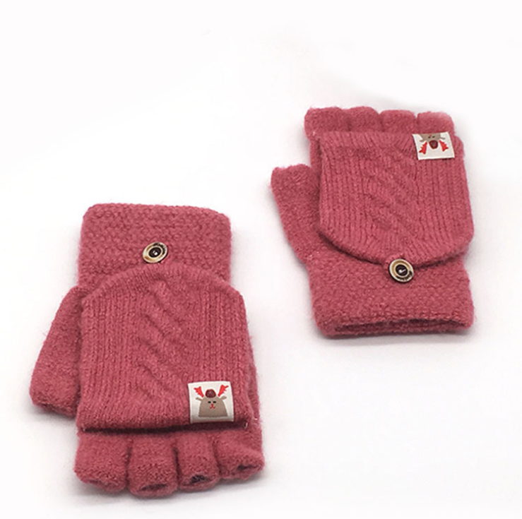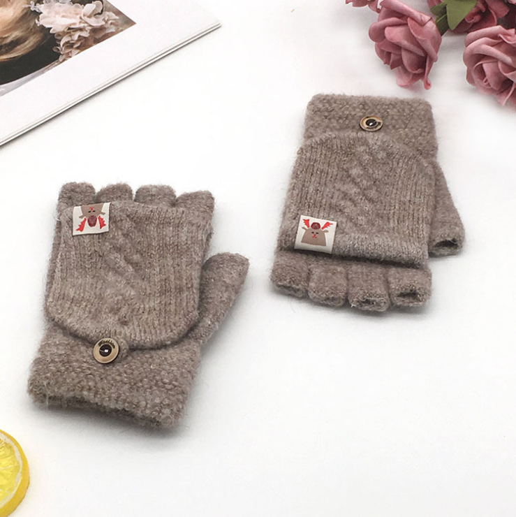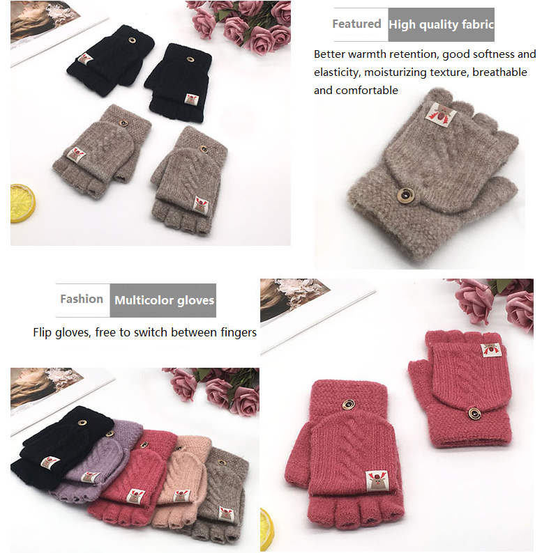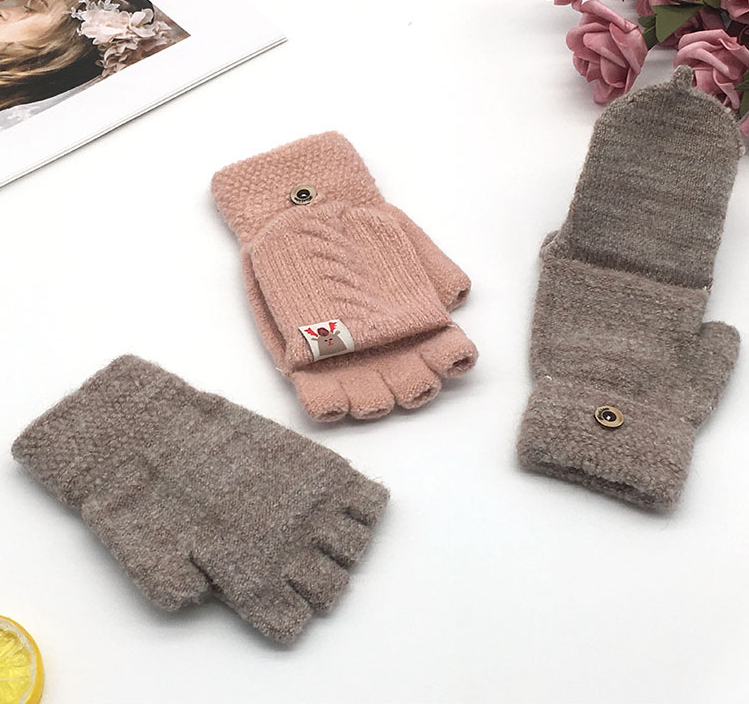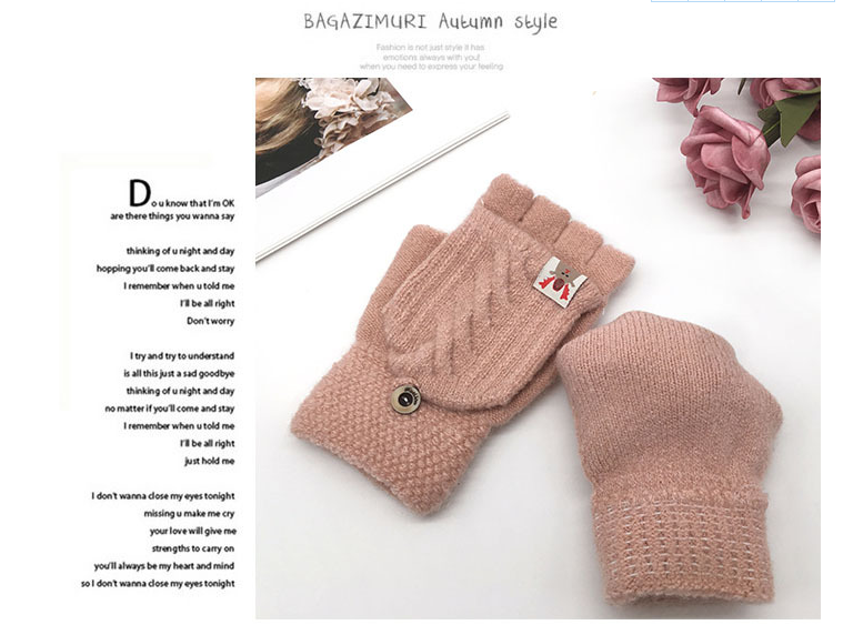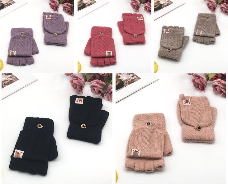 Women's gloves winter warm cute student cartoon knitted jacquard flip half finger dual-purpose gloves