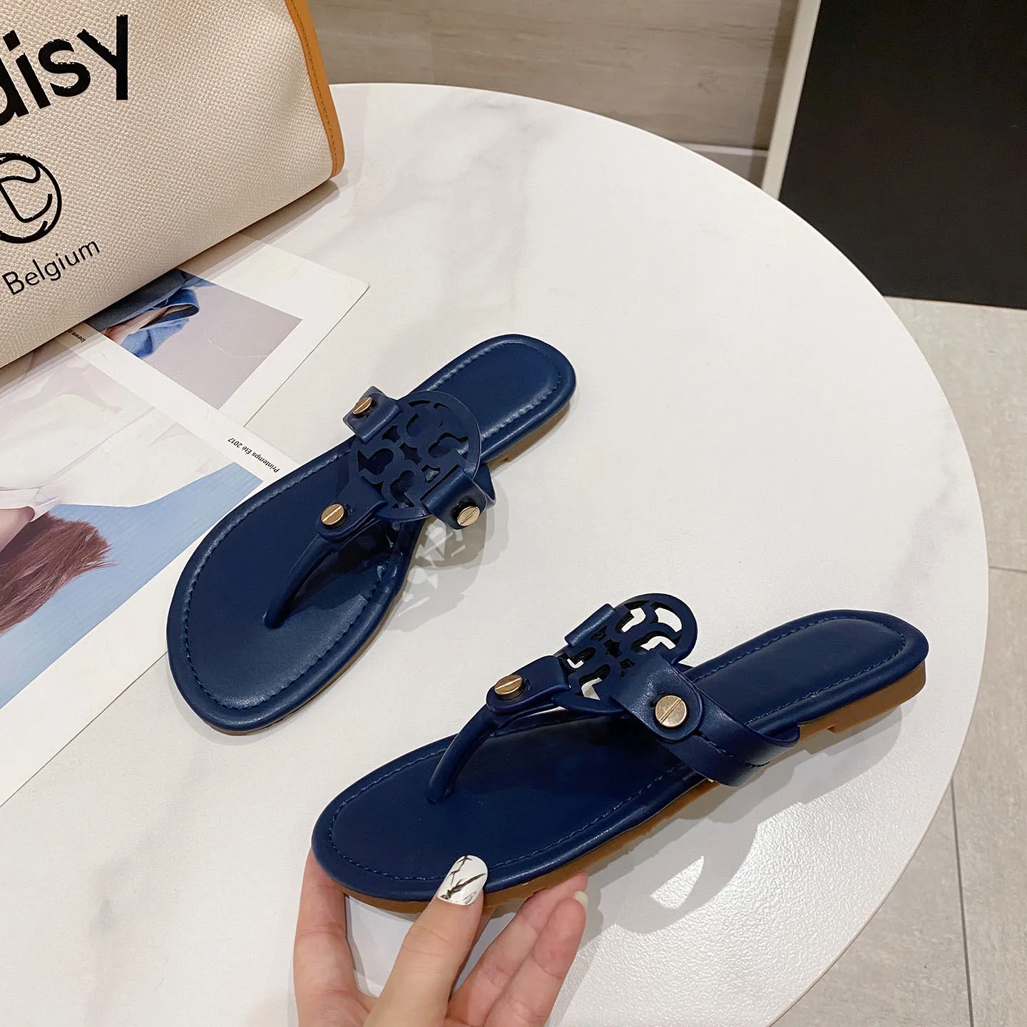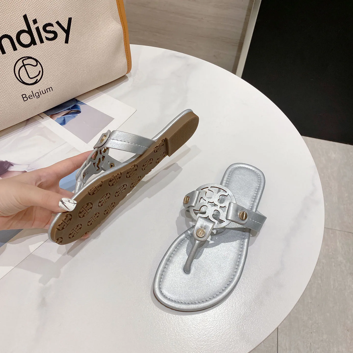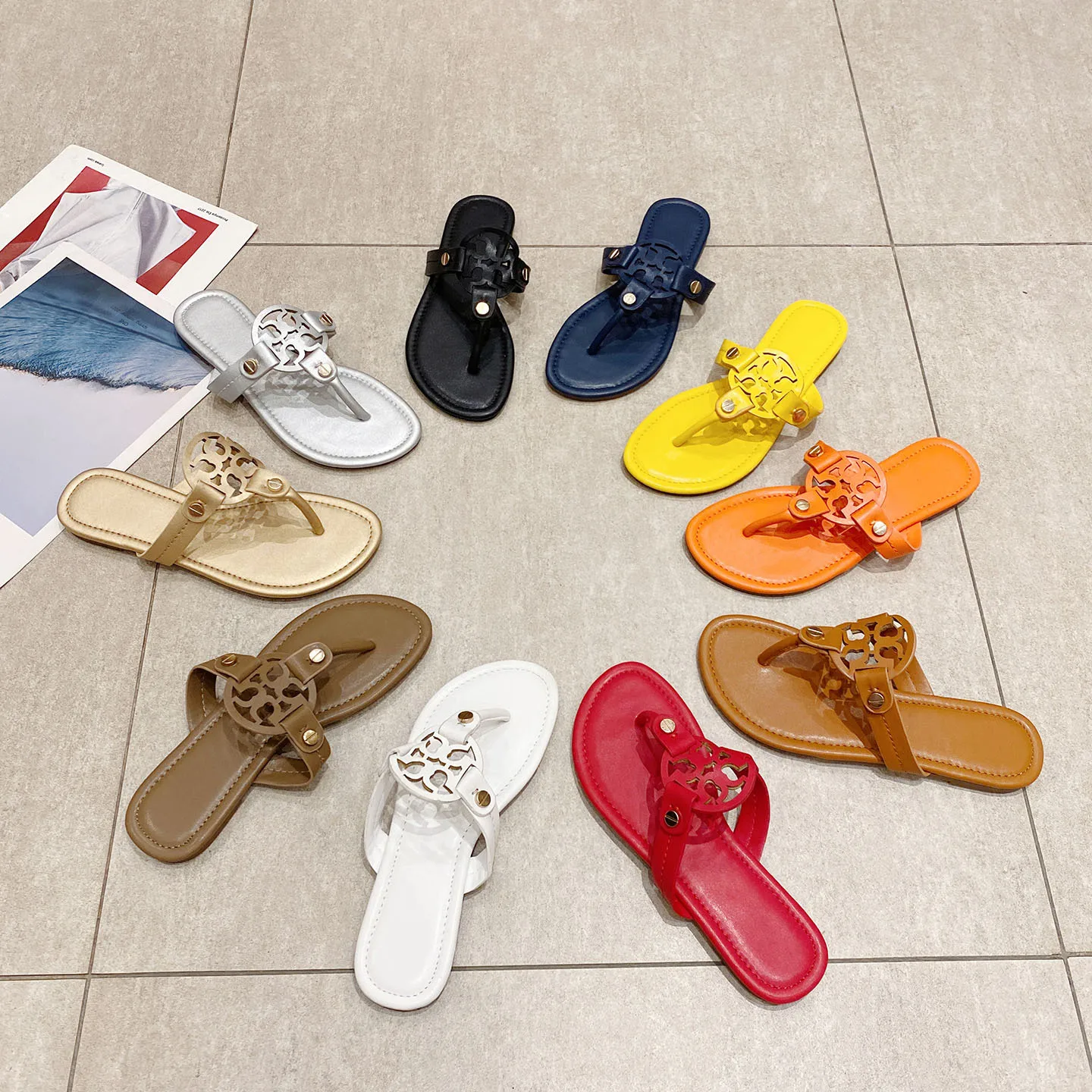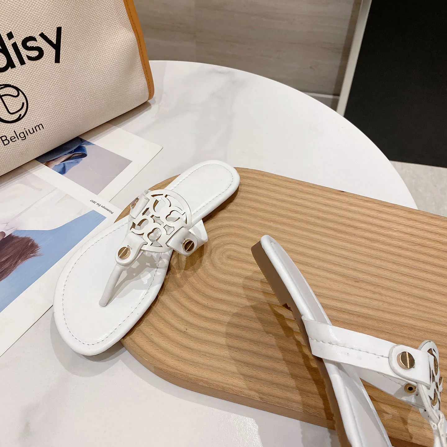 Women's summer sandals pu leather flat beach slippers ladies plus size white flip flops