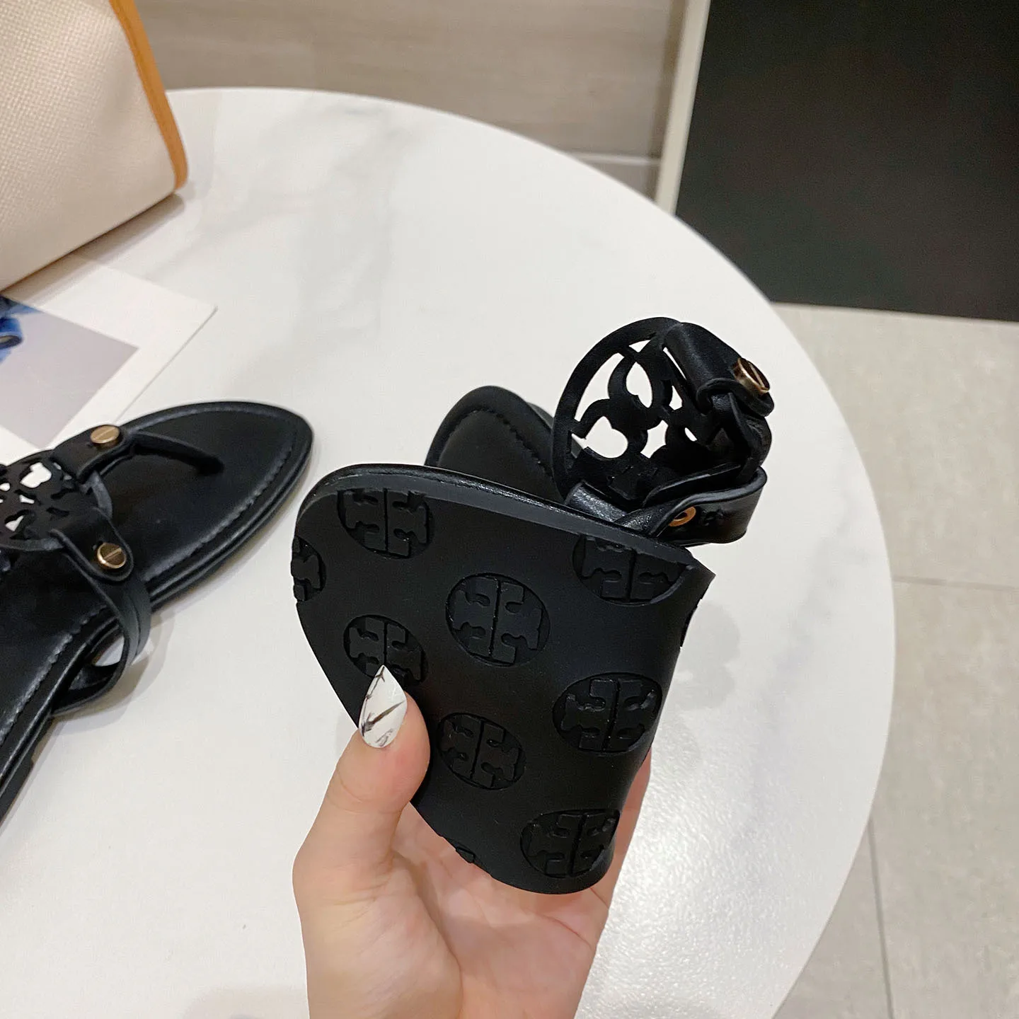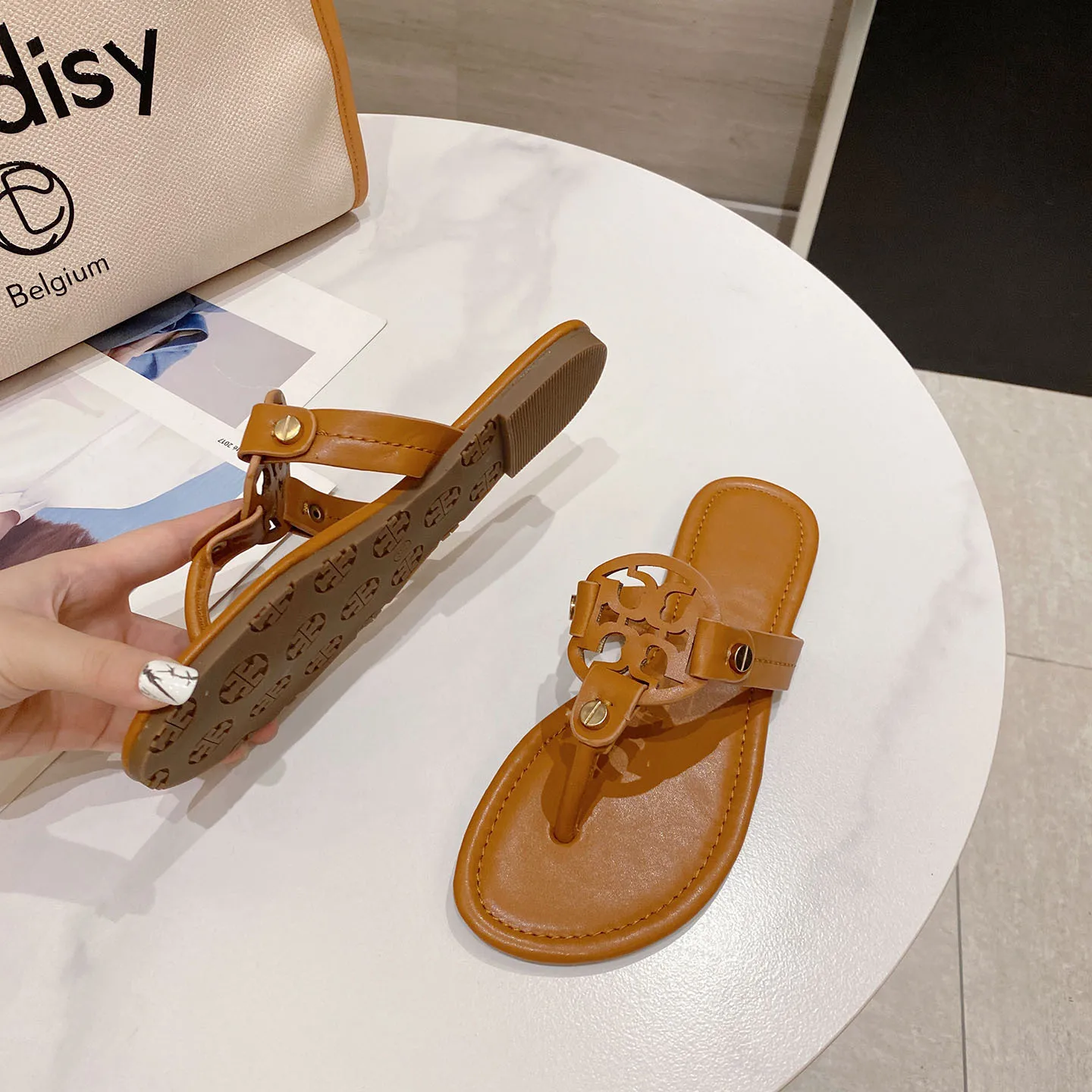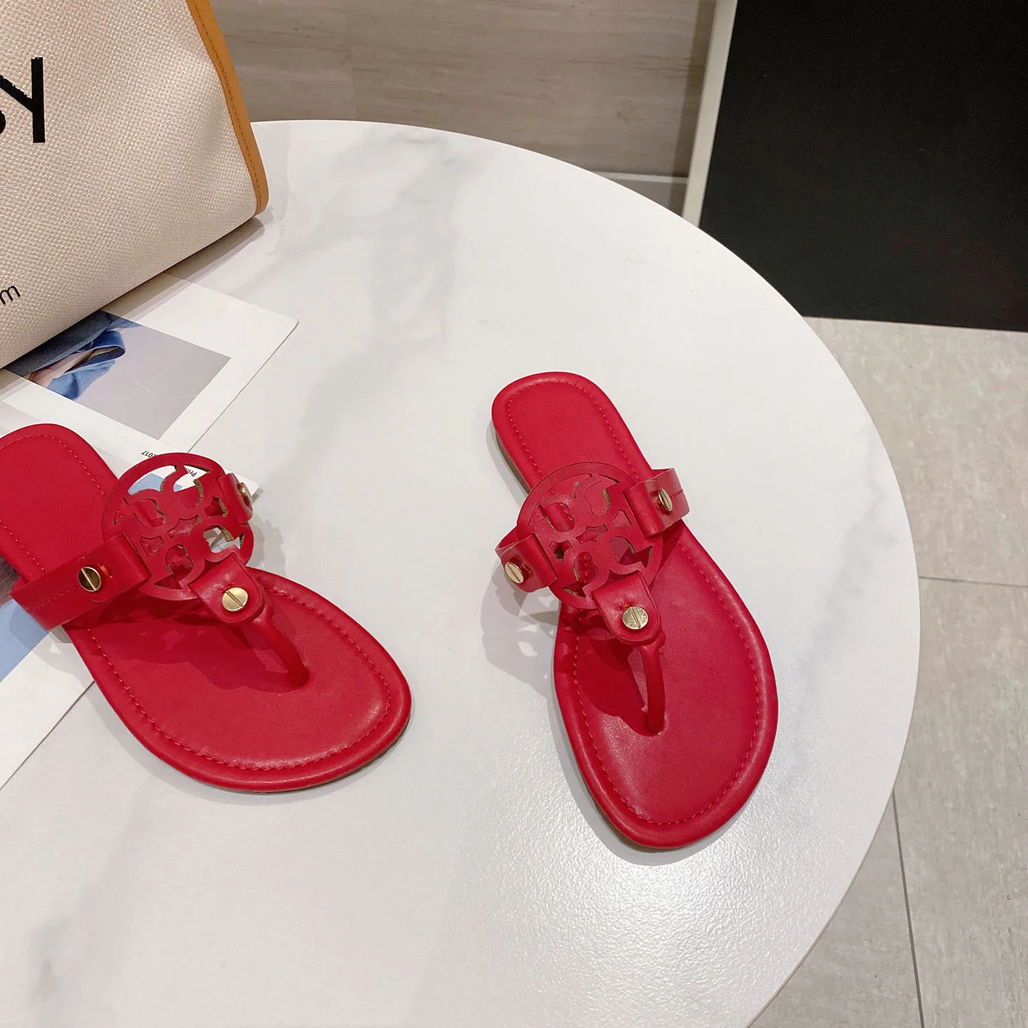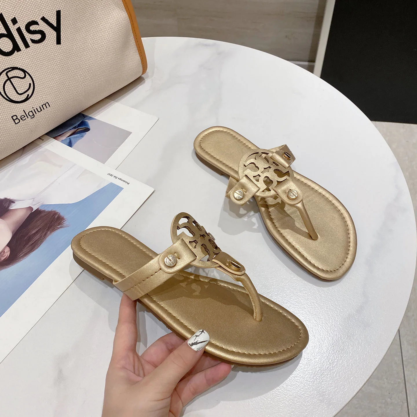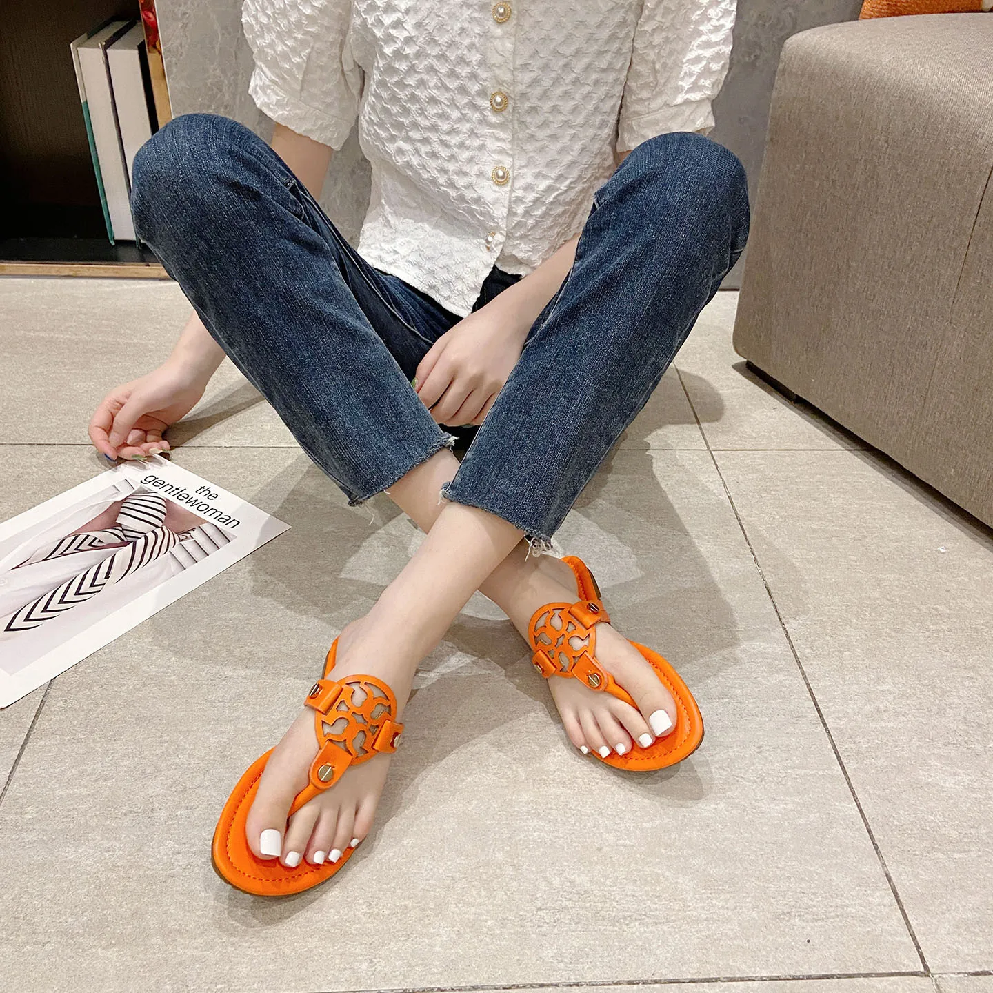 Women's summer sandals pu leather flat beach slippers ladies plus size white flip flops