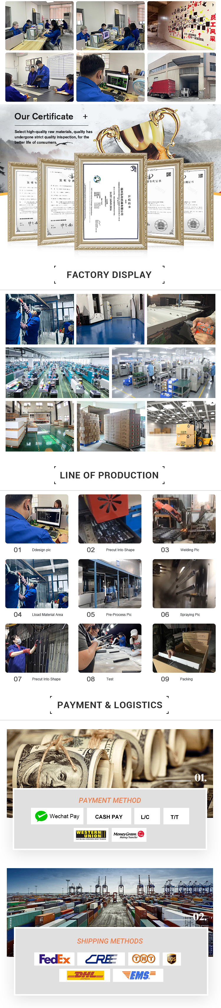 Fuzhou Honghe Machinery Co., Ltd. was established in 2015 and is located in Fuzhou City, Fujian Province. It specializes in the production of metal furniture, iron crafts, etc. We passed lATF16949 quality system certification in 2016, and our strict and consistent quality control system guarantees your order. Main export products: side tables, storage racks, lockers, bedside tables, TV cabinets, computer desks, wine racks, coat racks, etc. Meet your needs with high-quality products, good reputation, and reasonable prices. We can provide you with professional purchasing services, so if there is anything we can do for you, please feel free to contact us.