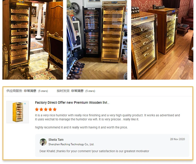 Wooden luxury cigar customized cigar cabinet humidity with Spanish cedar liner and temperature humidity control cigar cooler