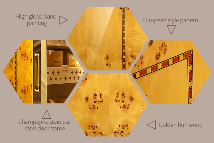 | Wood material for cabinet: | buril wood; | Color for cabinet: | Golden,black,white,red and brown; |