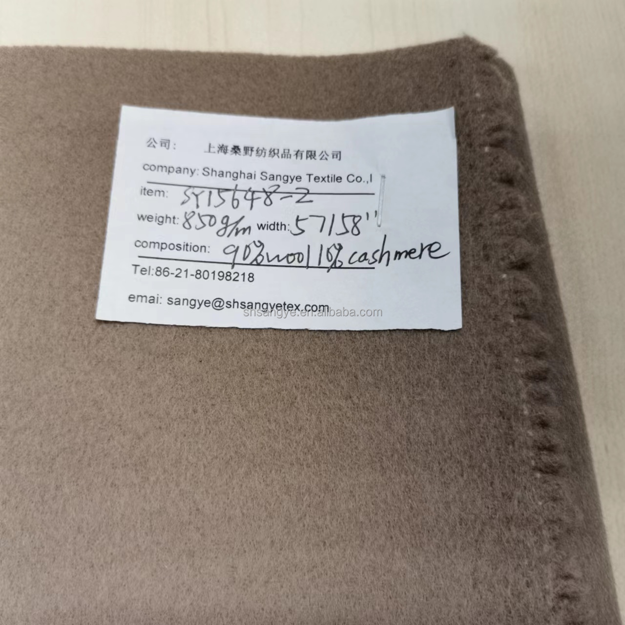 This article is described as: Commodity: SY15648-2 Width: 57/58" Weight: 567GSM Composition: 90% Wool 10% Cashmere Unit Price: $31.43/meter FOB Shanghai MOQ: 1000 meters per color per order, gray stock available, Delivery within 25 days Environmental protection, AZO less than 20PPM, no PA, limited harmful substances, high quality, dry cleaning, no washing, no bleaching, no drying, low temperature ironing. Color fastness can reach 3-4 grades, The shrinkage rate is below 5%, and the lead time for small orders is 1000 meters per color and 45 days per order. Generally speaking, 5-10 meters are available, and A4 samples are free. If you are interested, please contact us, thank you!