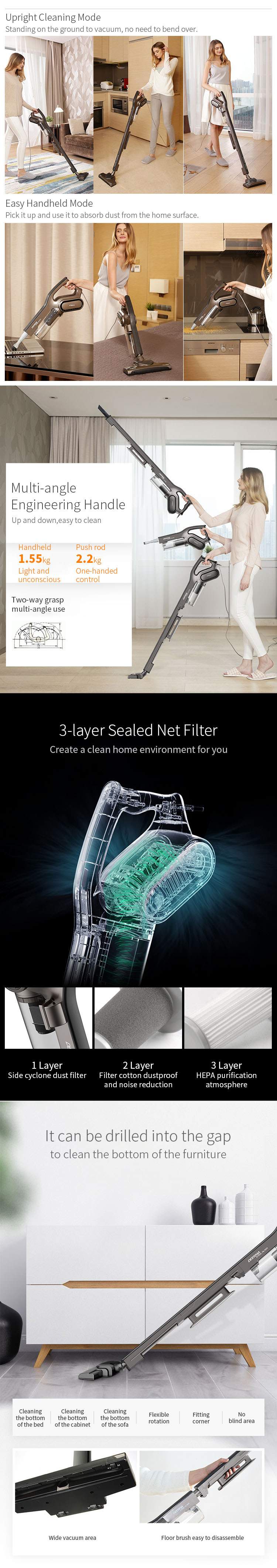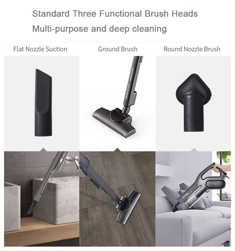 Upright cleaning mode, no need to bend down, stand on the ground to vacuum. Simple handheld mode, pick it up and use it to absorb dust from household surfaces.