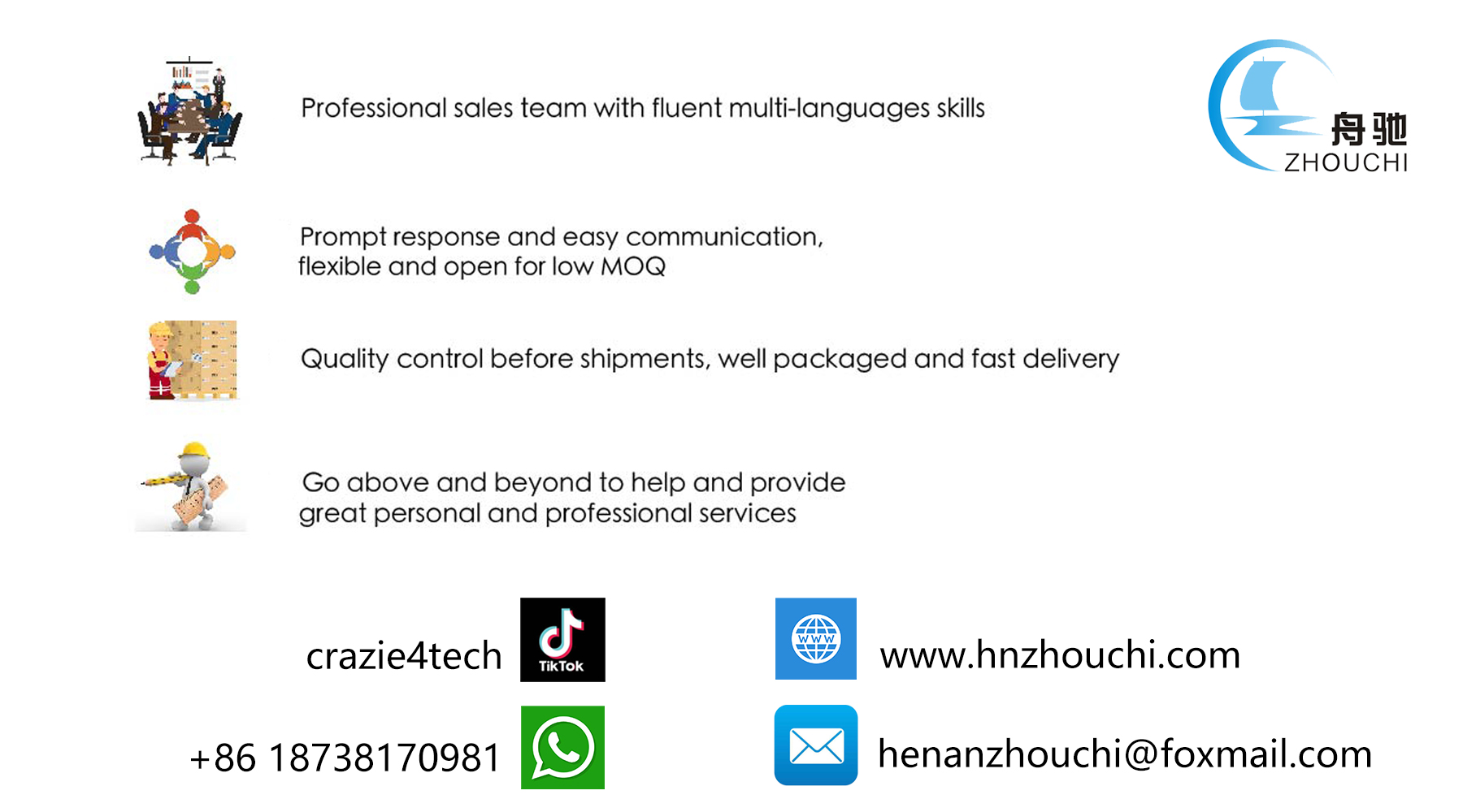 Henan Zhouchi Supply Chain Management Co., Ltd. was initiated and established by the Henan Communication Equipment Chamber of Commerce Association. Mission is to promote ChineseConsumer electronics productsProducts enter overseas markets and bring the best service to international customers. We strive to make our customerssatisfyWith high-quality "Made in China" products and ourbest support.