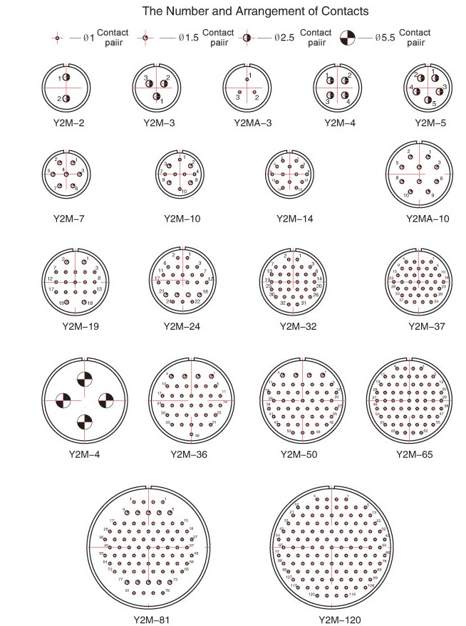Y2M series circular connectors with bayonet connection mechanism have the characteristics of convenient use and fast connection. The socket is waterproof. Widely used for circuit connection between electrical equipment and various electronic equipment.