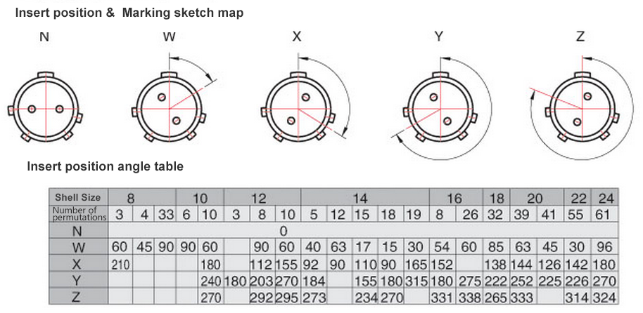 There are keyways with different angles on the periphery of the insulating mounting plate, which can be adjusted and assembled by the manufacturer according to the needs of use, so as to ensure that plugs and sockets of the same specification will not be inserted by mistake. In order to make plugs and sockets corresponding to the same assembly serial number of the same specification can be inserted, plugs and sockets corresponding to different assembly serial numbers cannot be inserted.