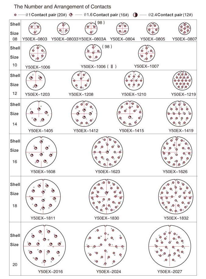 Y50EX series circular connectors are manufactured according to USMIL-C-26482 standard GJB598A, compatible with JY series, MS series and YB series. Response plugs and sockets of the same model are interchangeable. Bayonet connection mechanism series connectors have the characteristics of small size, light weight, high density, convenient use, high plug-in durability, etc., and are widely used in circuit connections in aviation, navigation, communication and other fields. , Railway locomotive command system, etc.
