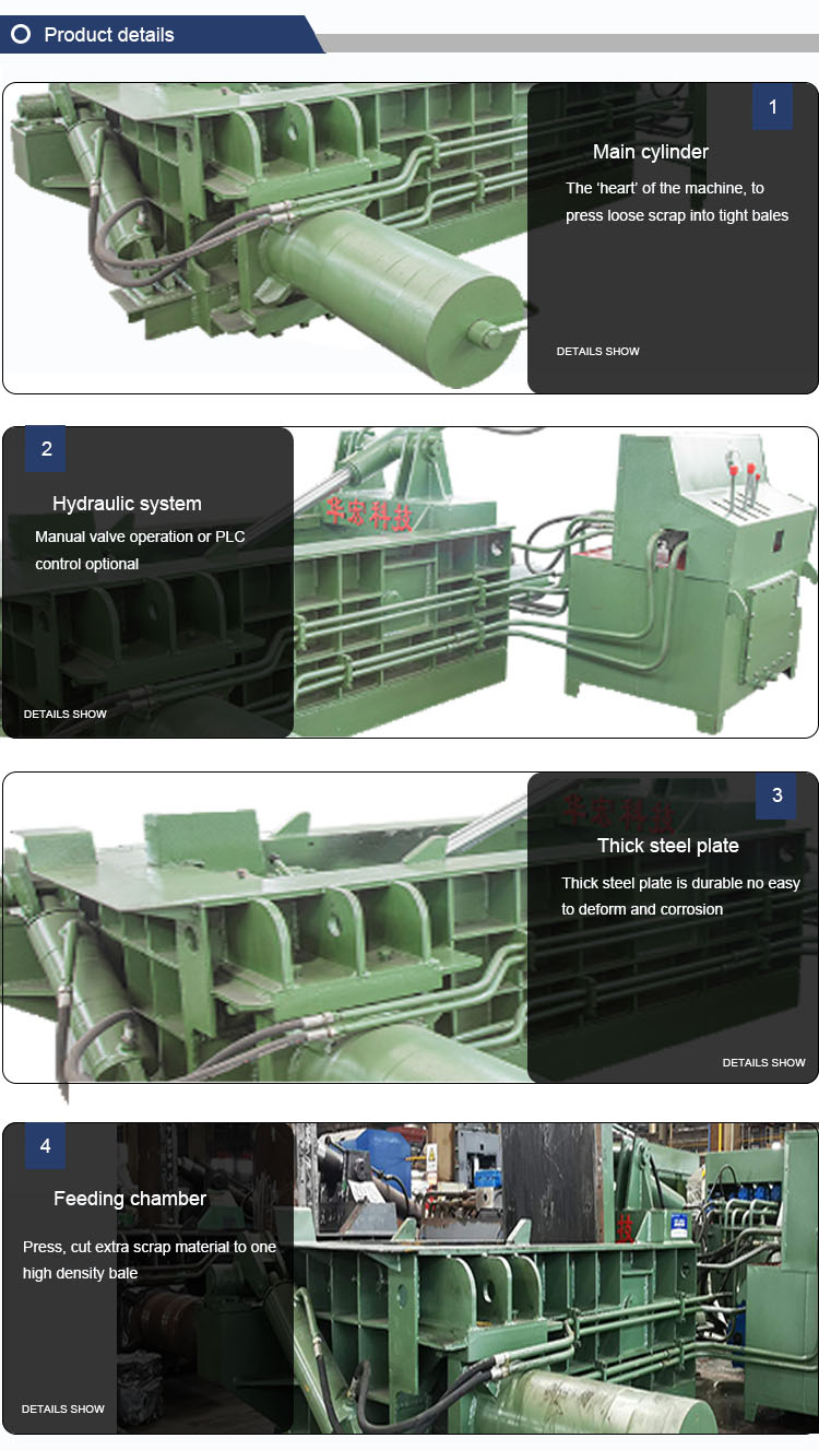 Y81 series hydraulic scrap balers are suitable for steel mills, recycling plants, ferrous and non-ferrous metal smelting industries to compress scrap metal (steel, copper, aluminum, stainless steel, scrap cars, etc.) into acceptable cuboid charges, cylinders and octagons .