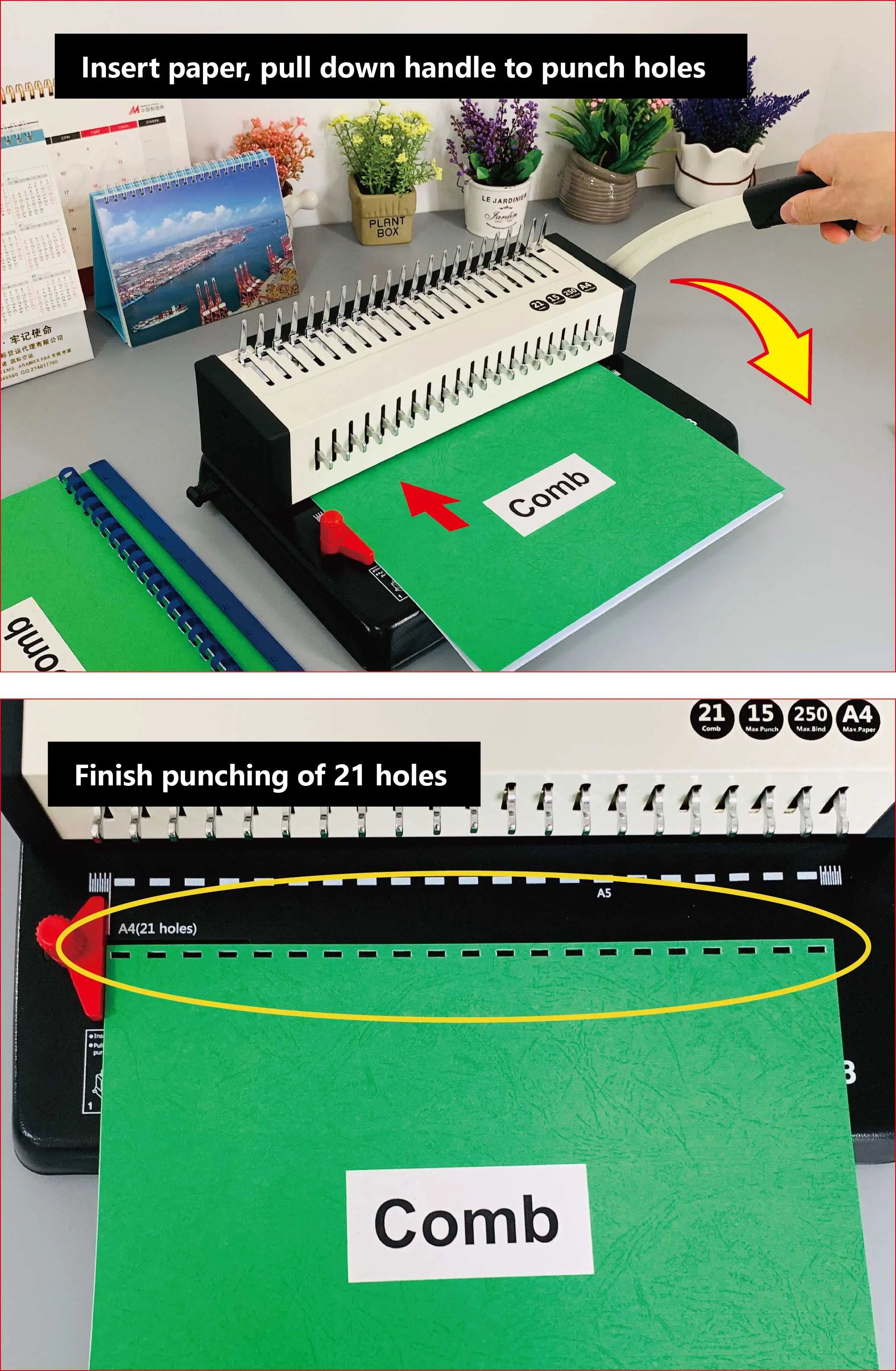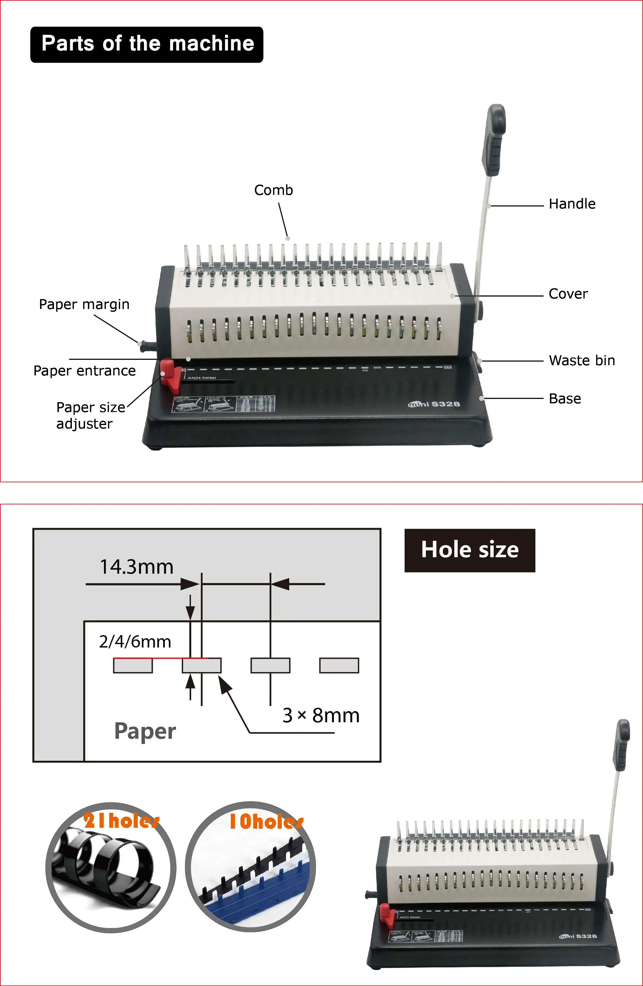 YB-S328 comb binding machine ,plastic comb binder,21 Holes punching machine office book binding machine