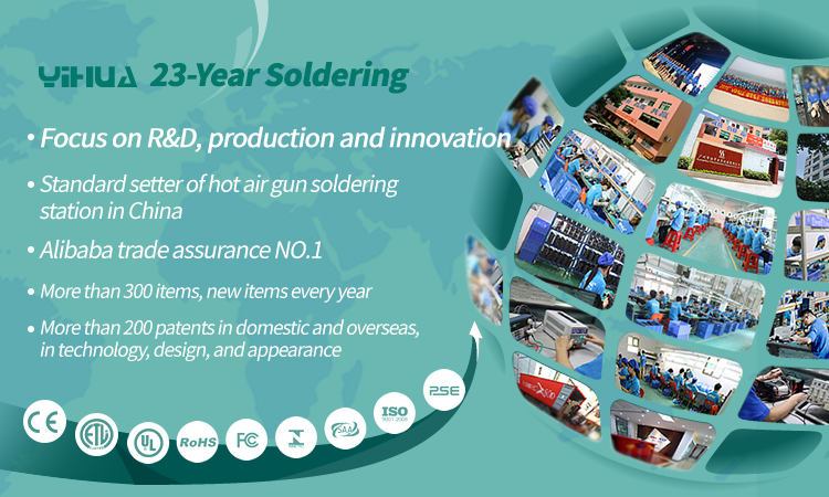 Welding is a job that requires patience, skill, and reliable tools. Yihua has been committed to the research, production and sales of welding equipment and DC power supplies since 2000. We are a well-known manufacturer in China, specializing in the production of various high-quality product rework stations including 2-in-1 soldering equipment, hot air rework stations, DC power supplies, lead-free soldering stations, constant temperature soldering stations, etc. Hot air rework stations with soldering irons and soldering rework stations with power supplies are also available. In nearly ten years, we have manufactured approximately 21 million high-fidelity machines.