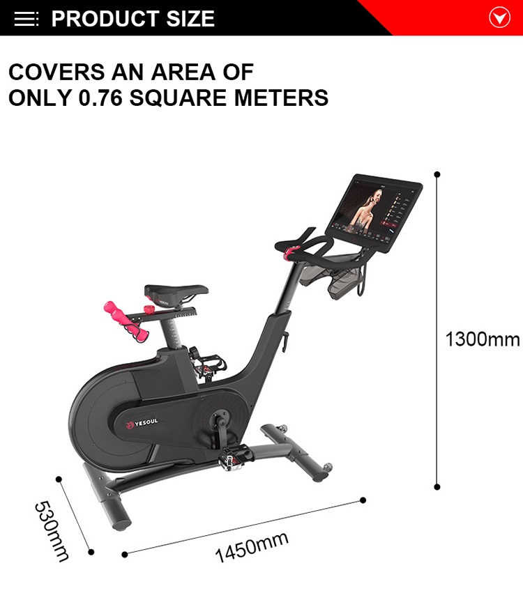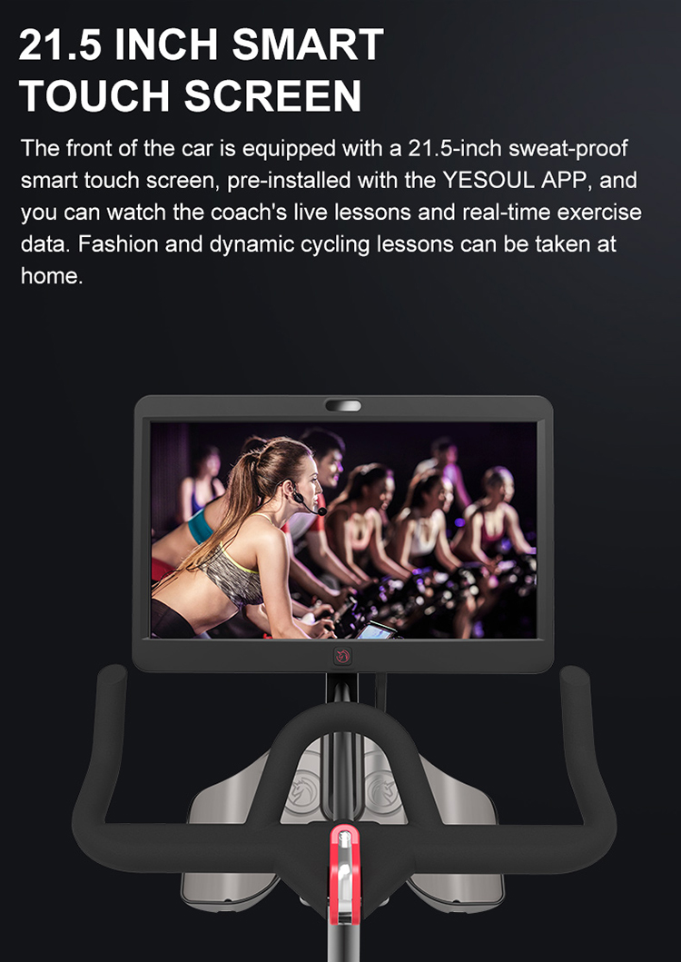 This model is a V1-PLUS spinning bike. The modified model adopts a V-shaped frame structure, which is very stable. This model won the 2016 China Good Design Award and the 2017 German Red Dot Design Award, and is permanently collected by the German Red Dot Museum. 21.5-inch LCD screen, you can watch the training course and feed back the training data screen in real time. Software supports ODM/OEM