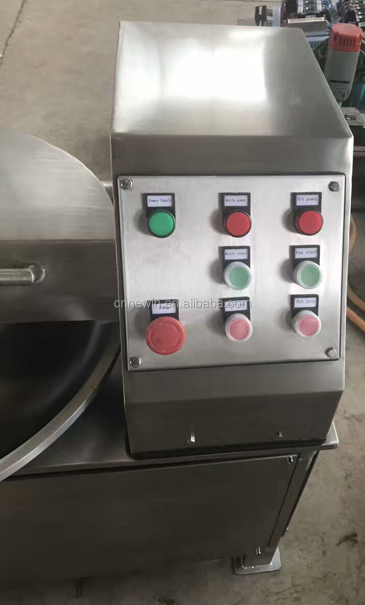 The meat bowl cutter uses the high-speed rotating kopis chopping effect to chop the main raw materials such as meat, minced meat, fat, etc. into minced or meat pulp, and at the same time mix other raw materials such as water, borneol and auxiliary materials into milky form.Reduces run time, reduces emissions, preserves filling's natural color, flexibility, productivity and product shelf life.