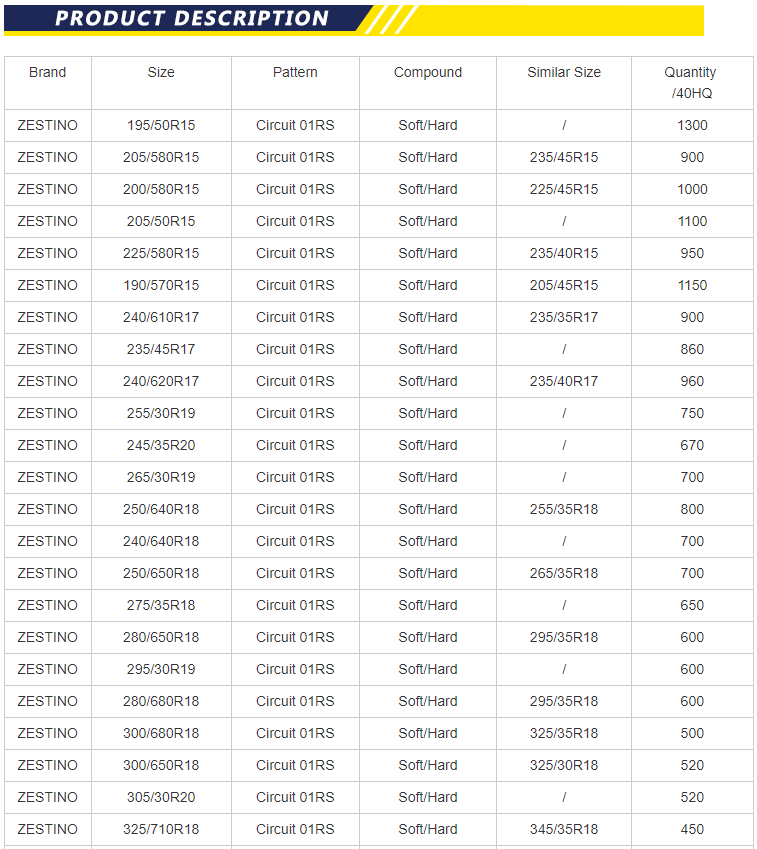 Designed and manufactured in Japan, Zestino was born in 2015 and has become one of the most popular racing tire brands in the world, and its growth rate is amazing. Now we are looking for the right partner in your market.