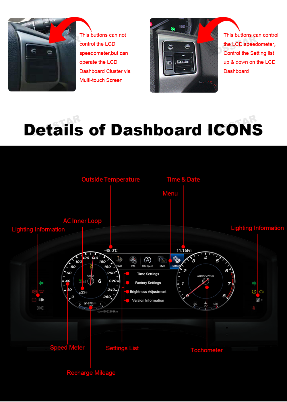 | model: | Suitable for Toyota Land Cruiser | type: | OEM shape, speedometer |