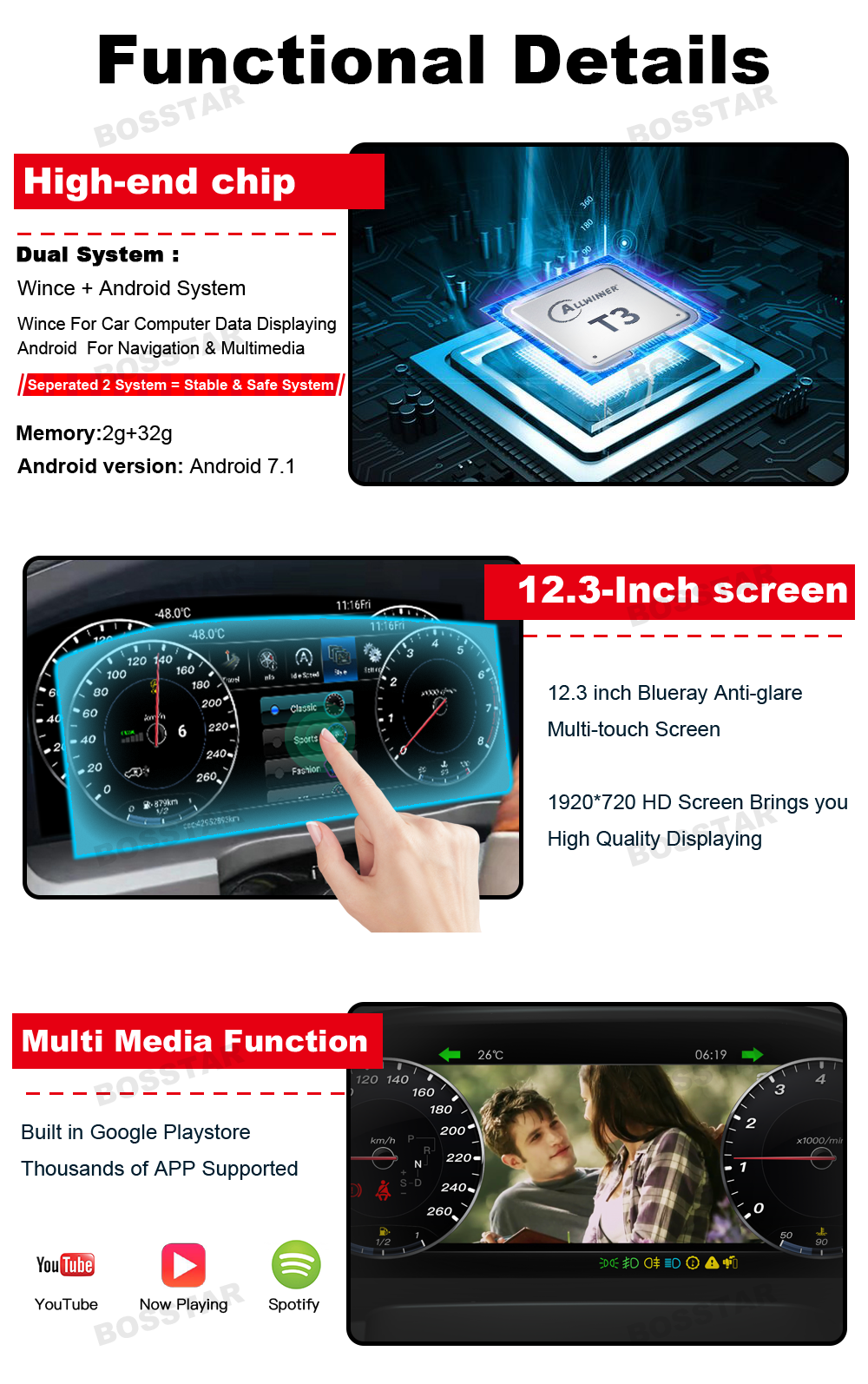 | Screen: | TFT LCD screen 12.3 inches | brand: | boss star |
