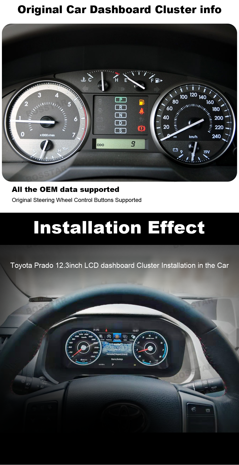 Android system car digital speedometer dashboard Toyota Land Cruiser car dashboard LCD display