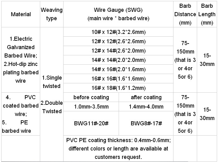 The weaving method is one main wire, one barbed wire; one main wire, double barbed wire; and double main wire, double barbed wire.