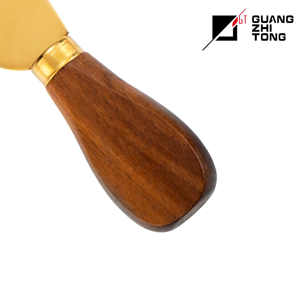 best sellers 4 pcs black walnut wood handle cheese knife set with PVD coating