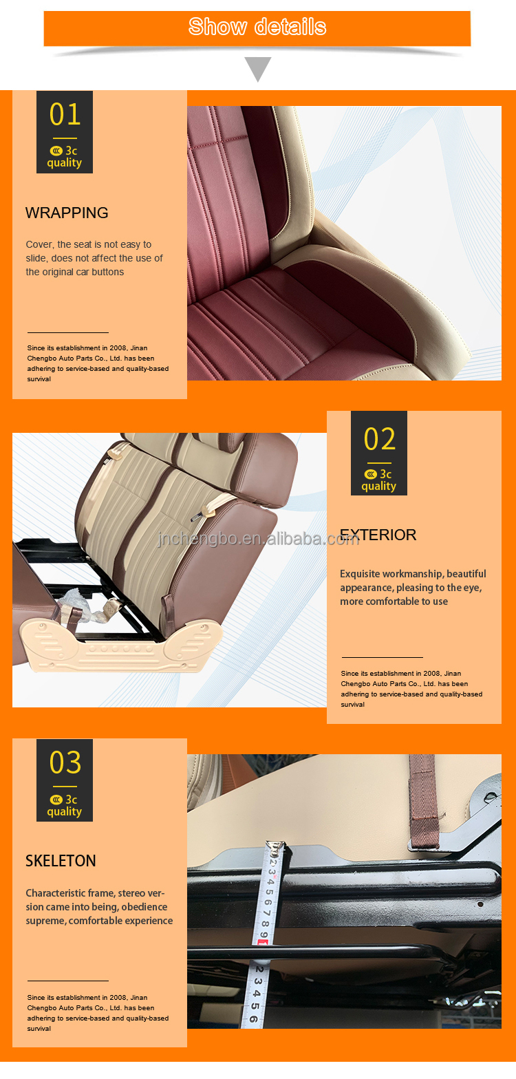 Jinan Chengbo Auto Parts Co., Ltd. was established in January 2008. Over the past ten years, the factory has been adhering to the business philosophy of "more focused, more professional", dedicated to professional research and development and manufacturing of high-quality comfortable car seats, suitable for different types of car seats of commercial vehicles, RVs, MPVs, RVs, campers, caravans, car trailers. After more than ten years of hard work and investment, our factory has developed into a modern enterprise integrating R&D, production, sales and service.