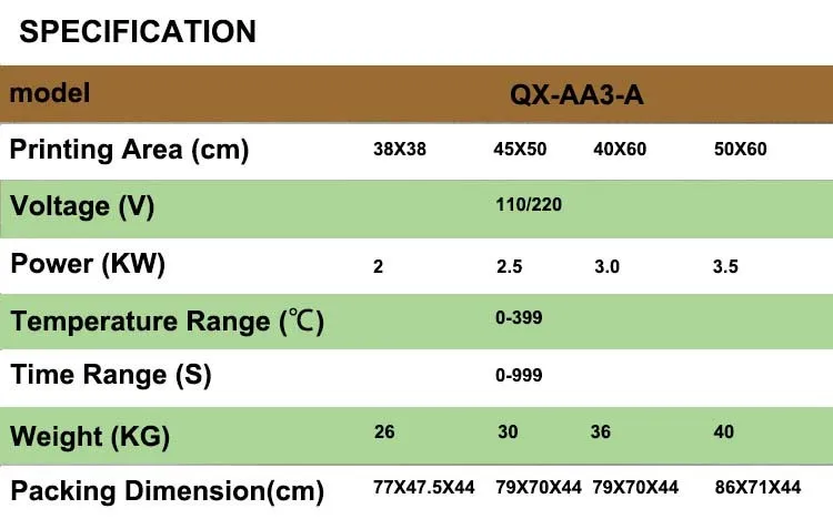 | Printing area 1: | 60*80cm; | Temperature range: | 0-399 Degree; |