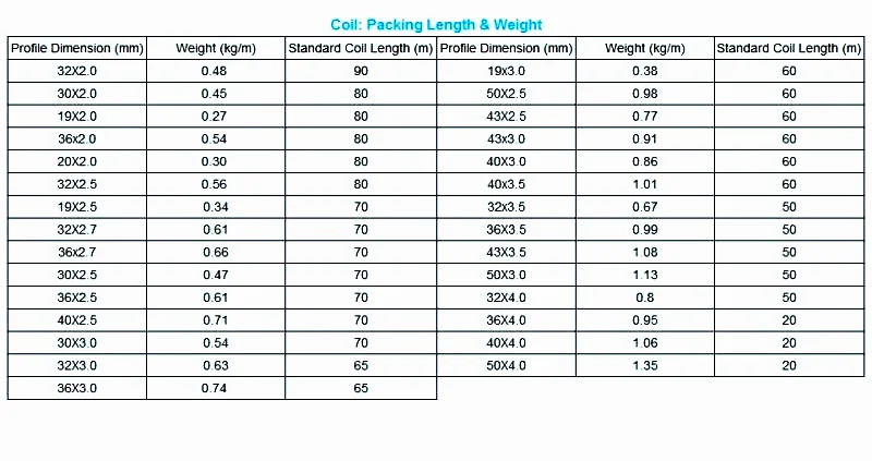 | Type Profile Size ( height x thickness, mm) | Application ( applicable to cut materials as bellow) |