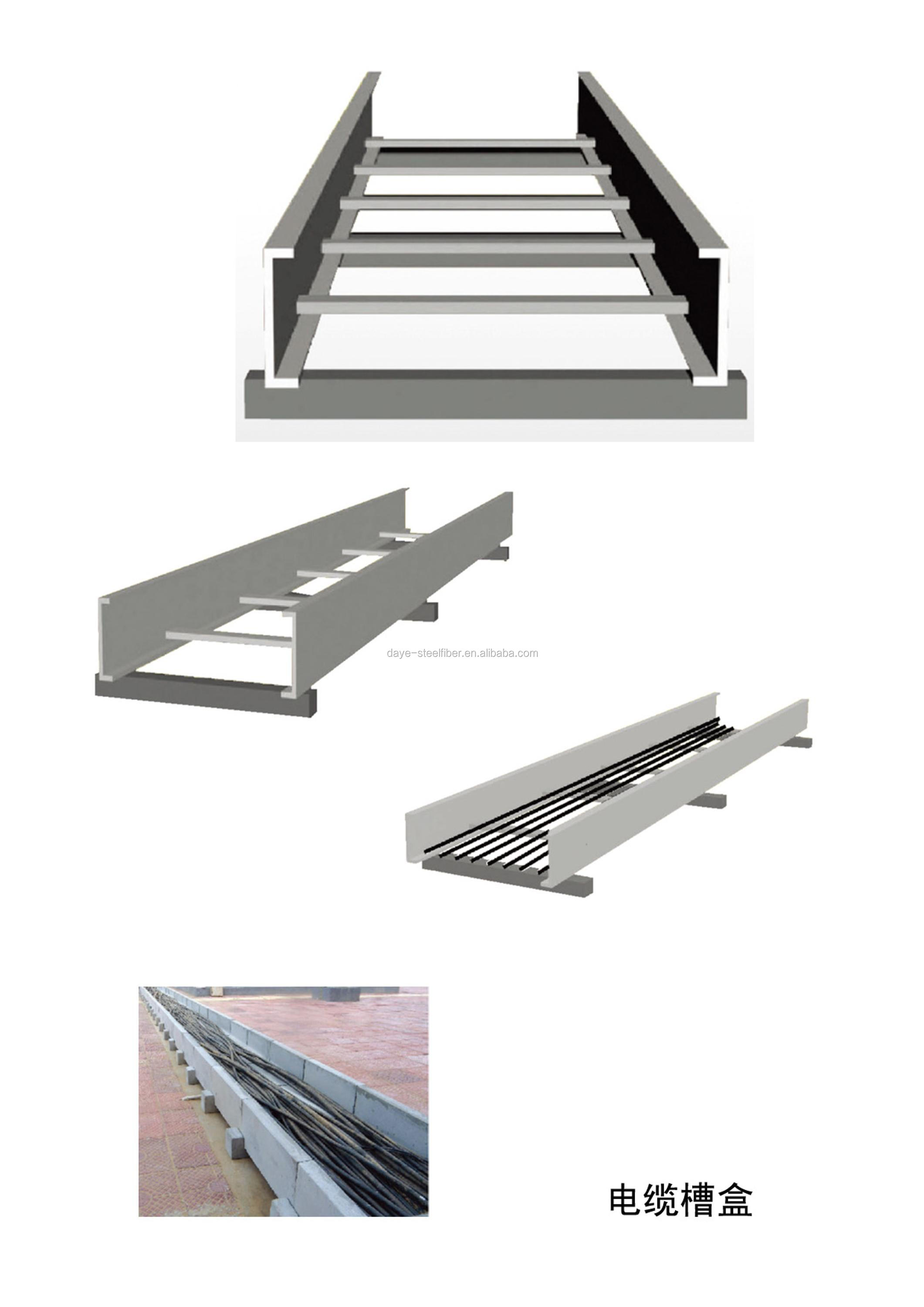 Cable tray is a one-time molding, with the protection od cables, good insulation, high strength, aging resistance, flame retardant, good environmental adaptability (-50 DEG C to DEG C) is non-toxic, tasteless, light (usually only 1/4 of the steel fiber groove at weight, and 1/10 of cement cable through at weight). Convenient installation, low cost, long service life, and has anti-theft function. Particularly applicable to the construction of highways, railways, tunnels, power plant, petroleum, chemical, municipal and other projects.