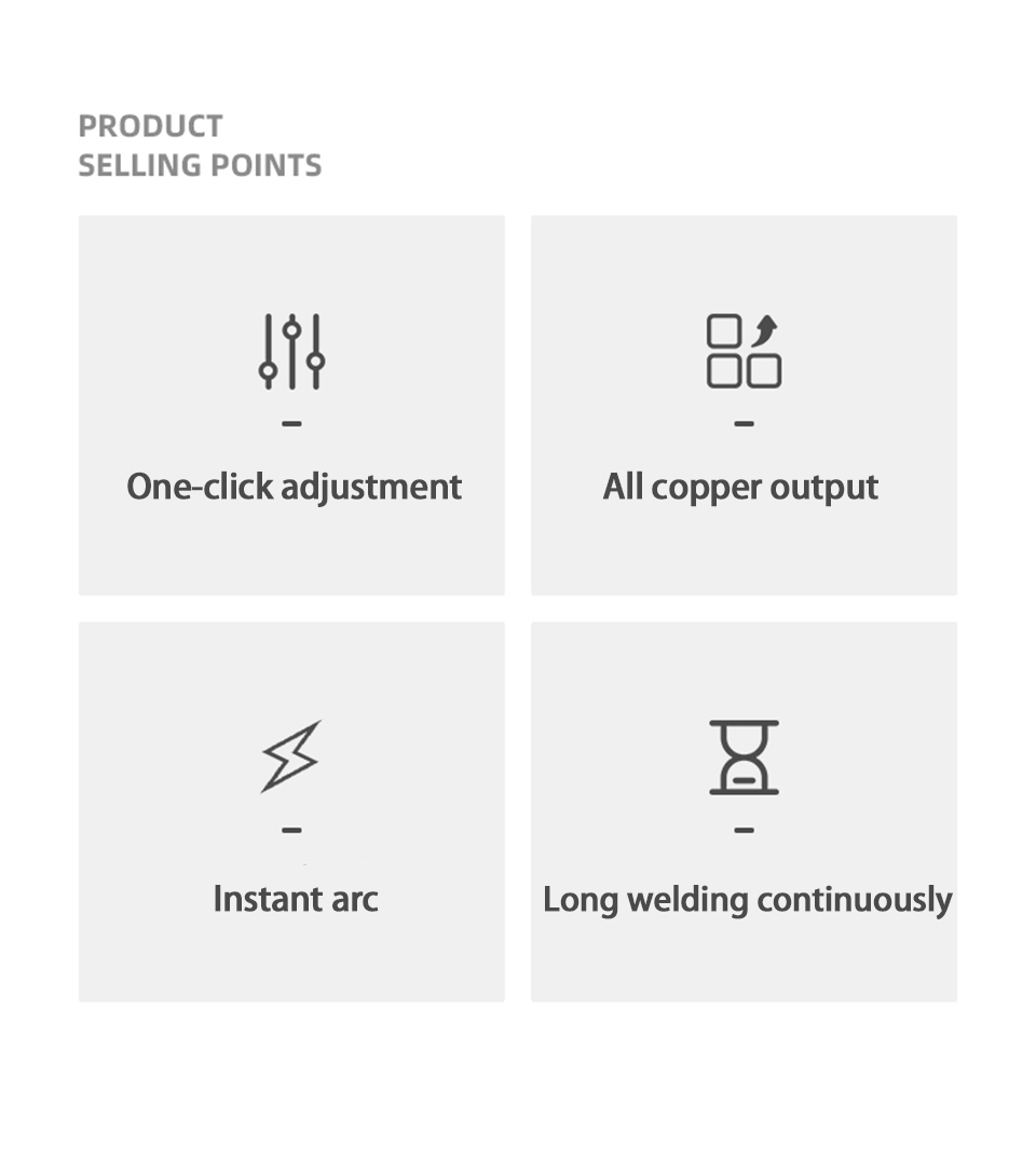 5. High no load voltage, smooth and stable welding performance with minimal spatter