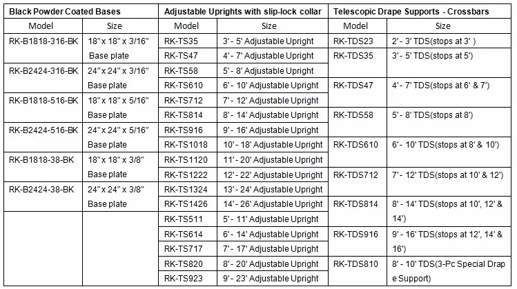 | Bar size: | 2'- 26' | Drape: | Chelloffon, Banjo, Velvet, Velou |