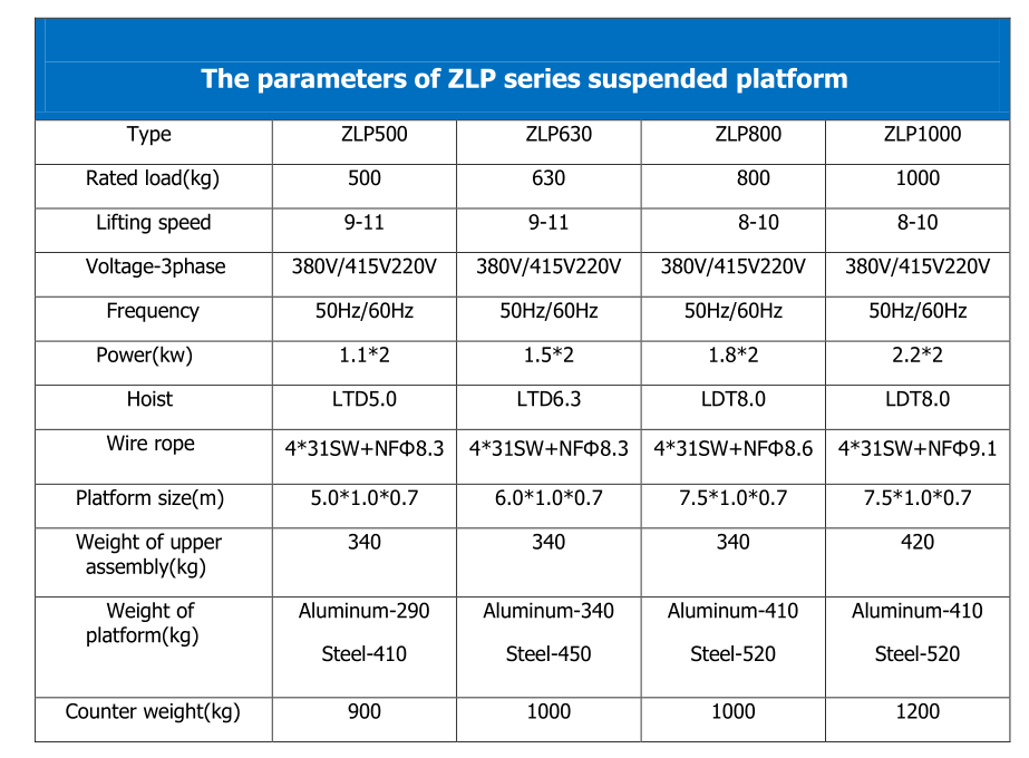 Technical date of ZLP 800Electric Scaffolding Platform: