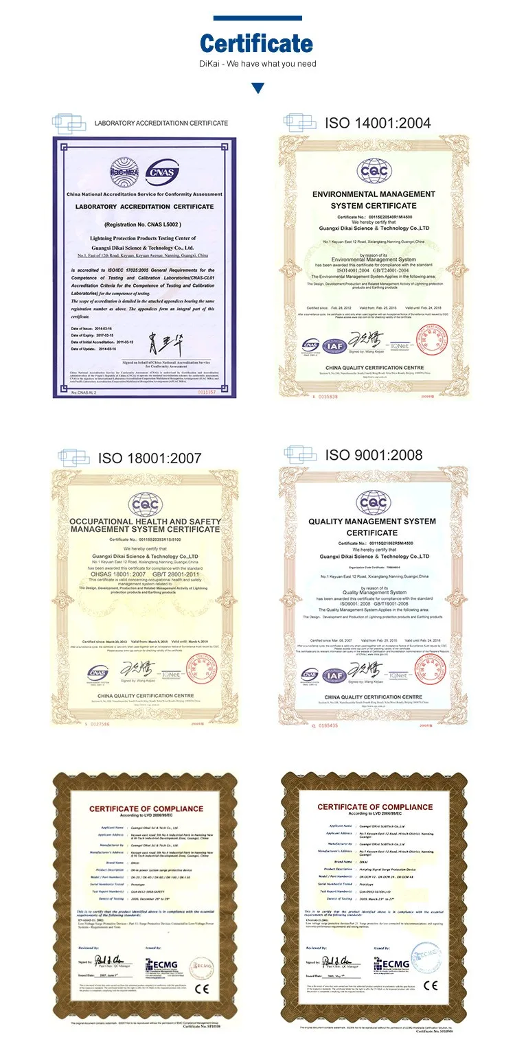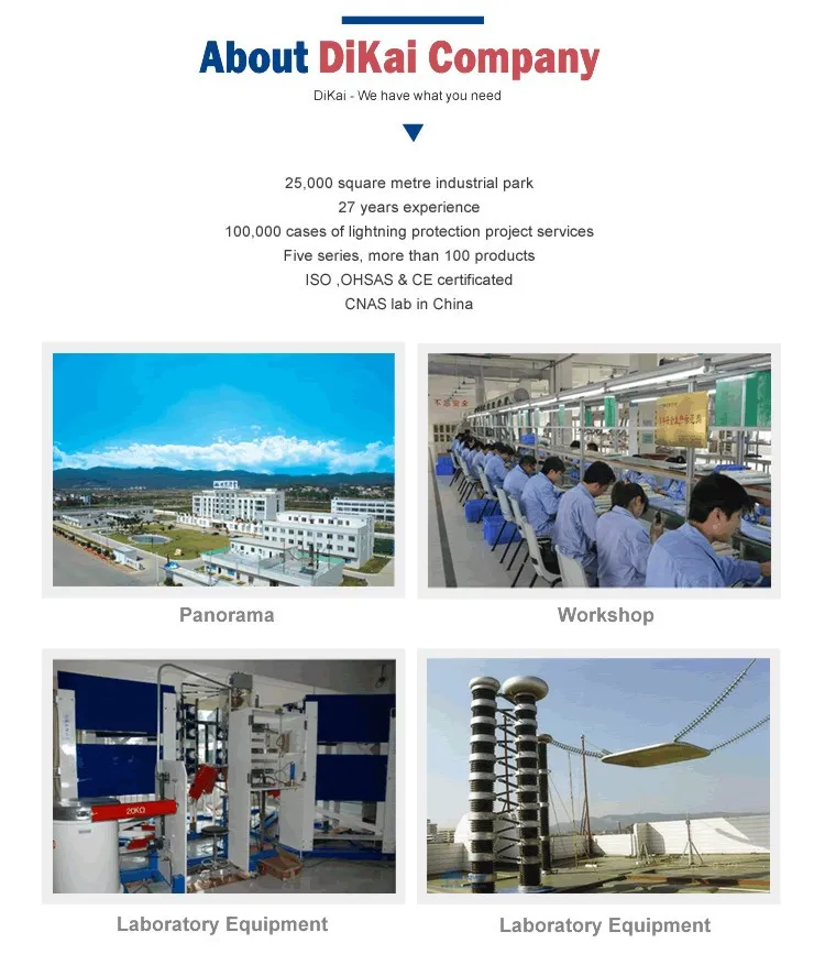 DK8-BX10 Early Streamer Emission(ESE) Lightning Rod is designed according to IEC Standard “High Voltage Testing Technology First Part: General Definition and Testing Requirement” and GB 50057-2010 “Design Specification of Building Lightning Protection”. This lightning rod contains two parts: air termination(0.6 meter) and support accessory(1.2 meter), which can be combined into a integral through bolt. The Advance Time is 60μs. Under the same installation height, the radius of protection is larger then the ordinary lightning rod. With the advantages of light-weight and low load, it adopted stainless steel