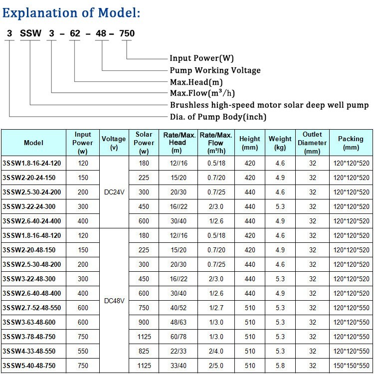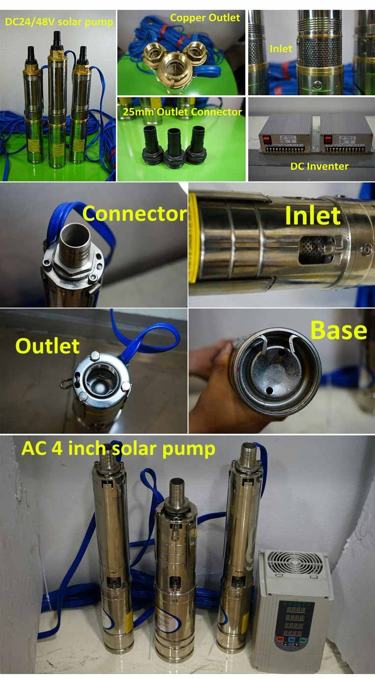 3SSW is a low pressure pump specially designed for solar applications. If more powerful solar water pump price DC water pump solar energy is needed, we should use 2SZW, 3SZW, 4SZW, 6SZW water pumps, which are both AC and DC.