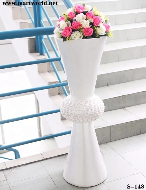 fiber glass pedestal tall flower vase for artificial flower arrangement big flower stand for wedding reception decoration(S-148) |