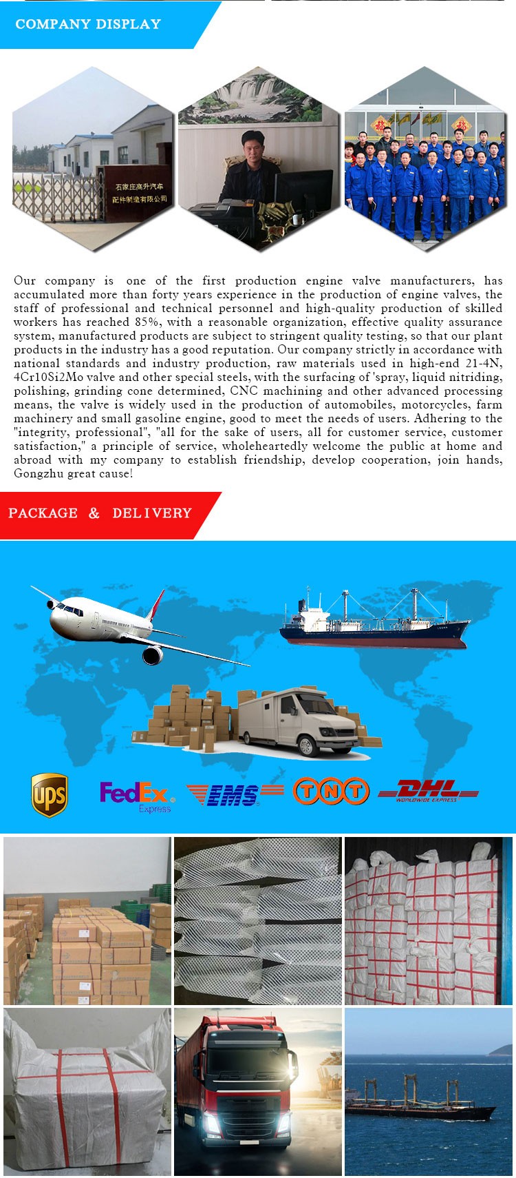 Packing: neutral packing, white bag, white box, engine valve carton or according to customer requirements.