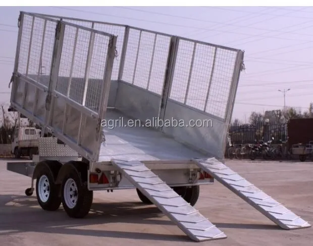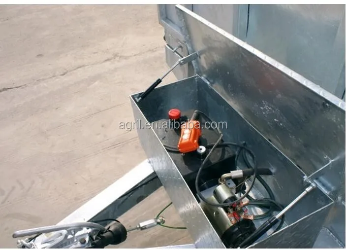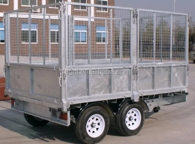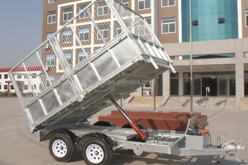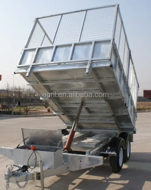 fully hot deep galvanized tipping trailer ,dump wagon, tandem axles with battery oil tank and wire mesh fence