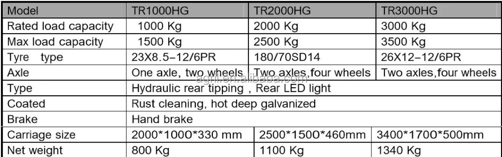 agriculture uses tipping trailer, uses the hydraulic pressure dumping mechanism to get up lifts a box load to be bigger than 2 ton, the angle is bigger than 45 º about, has the both sides to pour out the function. The barometric pressure braking system, applies the brake safely reliable. The steel plate springs absorption of shock, has the big latent load ability and the fine absorption of shock performance, is suitable each kind of road surface the travel condition. The compartment board uses the deep ripple structure, had prevented effectively under compartment board heavy load crosswise “drum stomach” metamorphism, and lengthened the compartment service life. This trailer loading end is low, the structure reasonable, the travel steady, the loading convenient, the outlook is artistic, the economy is durable, the use work environment is widespread, the unloading efficiency is high