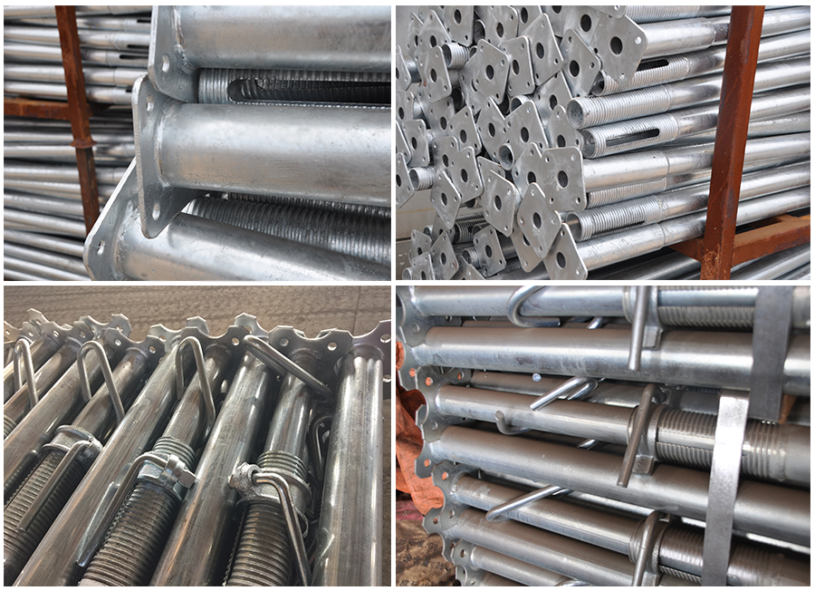 Adjustable steel strutsWith high load-carrying capacity, it is designed to support horizontal formwork members. It contains an adjustable threaded and slotted hole for easy installation, removal and levelling. This allows scaffolding to be built at high speed. The component is finished with a galvanized finish to prevent rust.