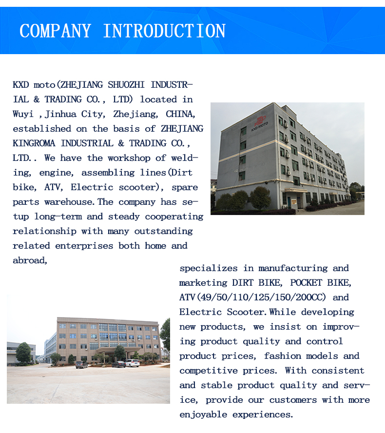 KXD moto is located in Wuyi City, Zhejiang Province, by car: 30 minutes from Yongkang or Jinhua, 1 hour from Yuwei, high-speed rail: 1 hour from Hangzhou, 2 hours from Shanghai.