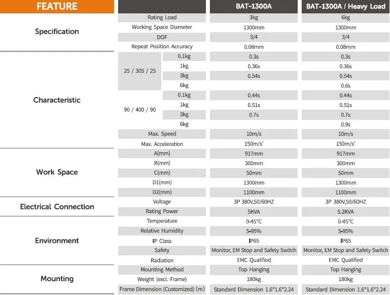 BAT Robot adopts high response servo drive system and highly optimized transmission structure, and also combines the special control system for robot developed by Robotphoenix, which greatly improves the speed and acceleration of motion. Under the standard stroke, the robot working speed can reach within 0.3s, fully meeting the demands of high-speed production.