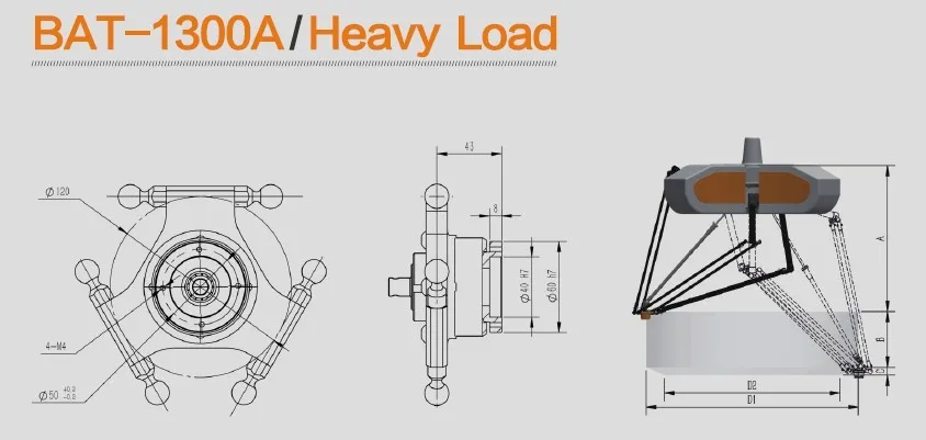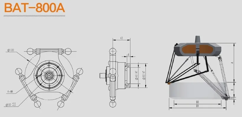 BAT-1100, with an area of only 1.4m*1.4m, has a working space of a cylinder with 1100mm diameter and 250mm height.