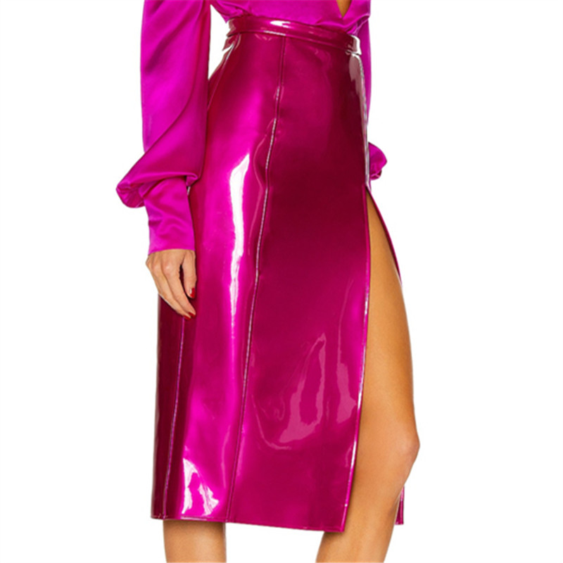 | Product Name | high split women waterproof fashion vinyl metallic street plain zipper back skirt club office wear |