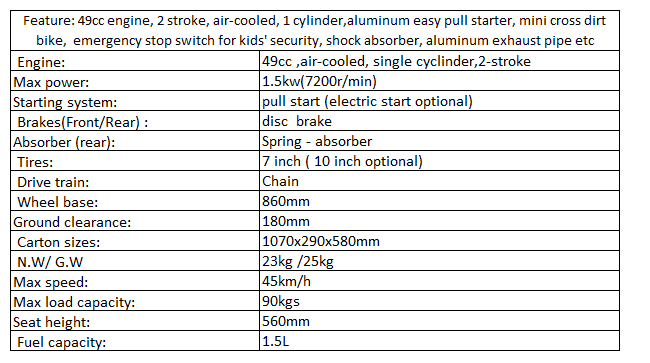 | Brakes (front/rear): | Disc brakes | Shift: | 50CC |