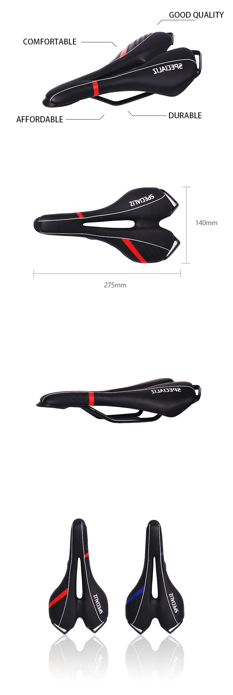 | Product name: | cycling bike bicycle seat saddle; | Size: | 275*140mm; |
