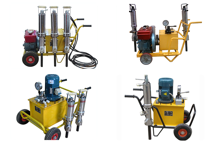 The splitting machine uses high-pressure oil as the energy source, cleverly uses the principle of the inclined wedge, so that the splitting force can reach hundreds of tons, or even thousands of tons, and it can easily split thousands of tons of boulders in a few seconds, so that the hard and huge ore can be removed from the mountain. separated out.