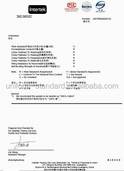 Qualification | 3rd party material (fabric and other trim) test reports to national standards such as BS3084, AATCC and ASTM are available. Complete test reports and certificates based on REACH / CPSIA / Oeko-Tex requirements.