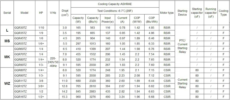 1)GQR70TZ, MK series, use R134a refrigerant;